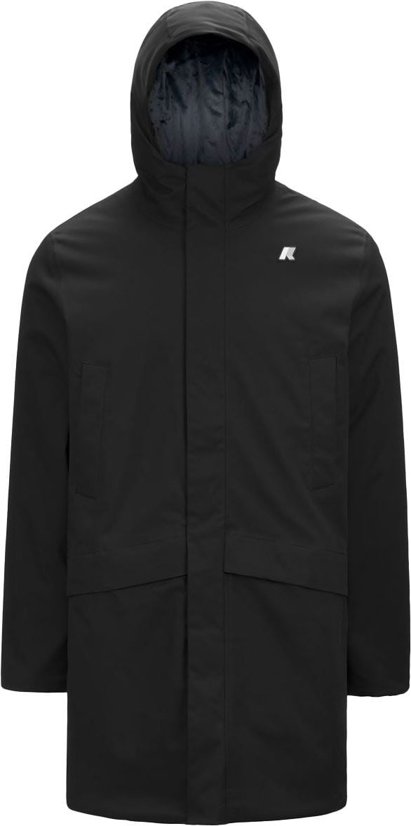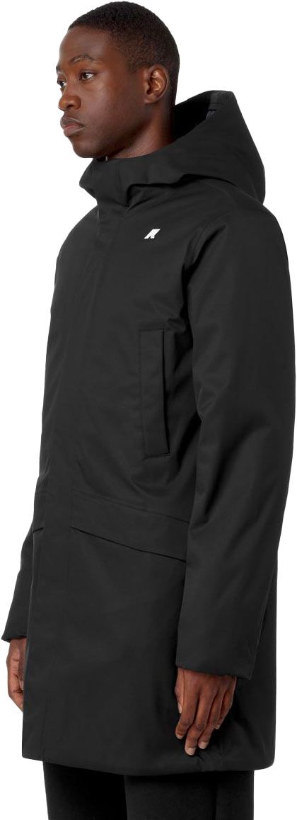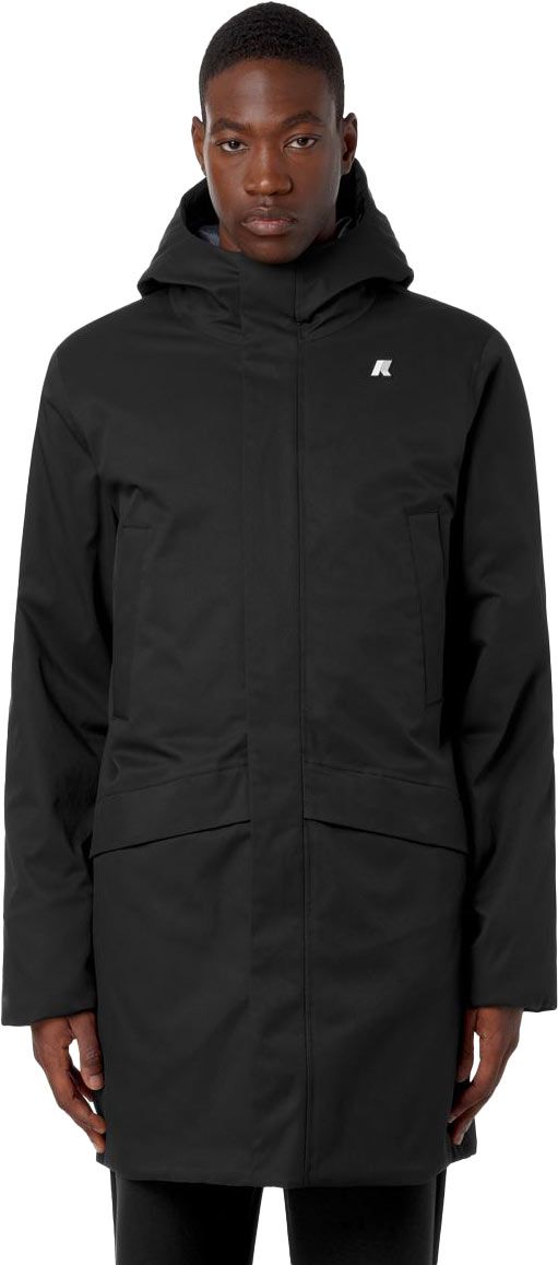 Parka K-Way Jarno Twill Marmotta homme : tissu imperméable coupe-vent, isolation synthétique mi-saison, coutures thermo-soudées, capuche et poches chauffe-mains intégrées.