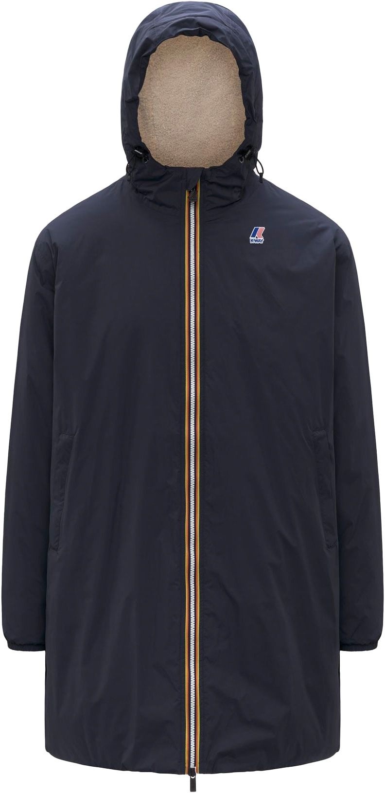 K-Way Le Vrai 4.0 Eiffel East Orsetto, veste longue unisexe imperméable, coupe-vent et respirante, doublure sherpa et rembourrage synthétique pour une chaleur optimale en hiver.