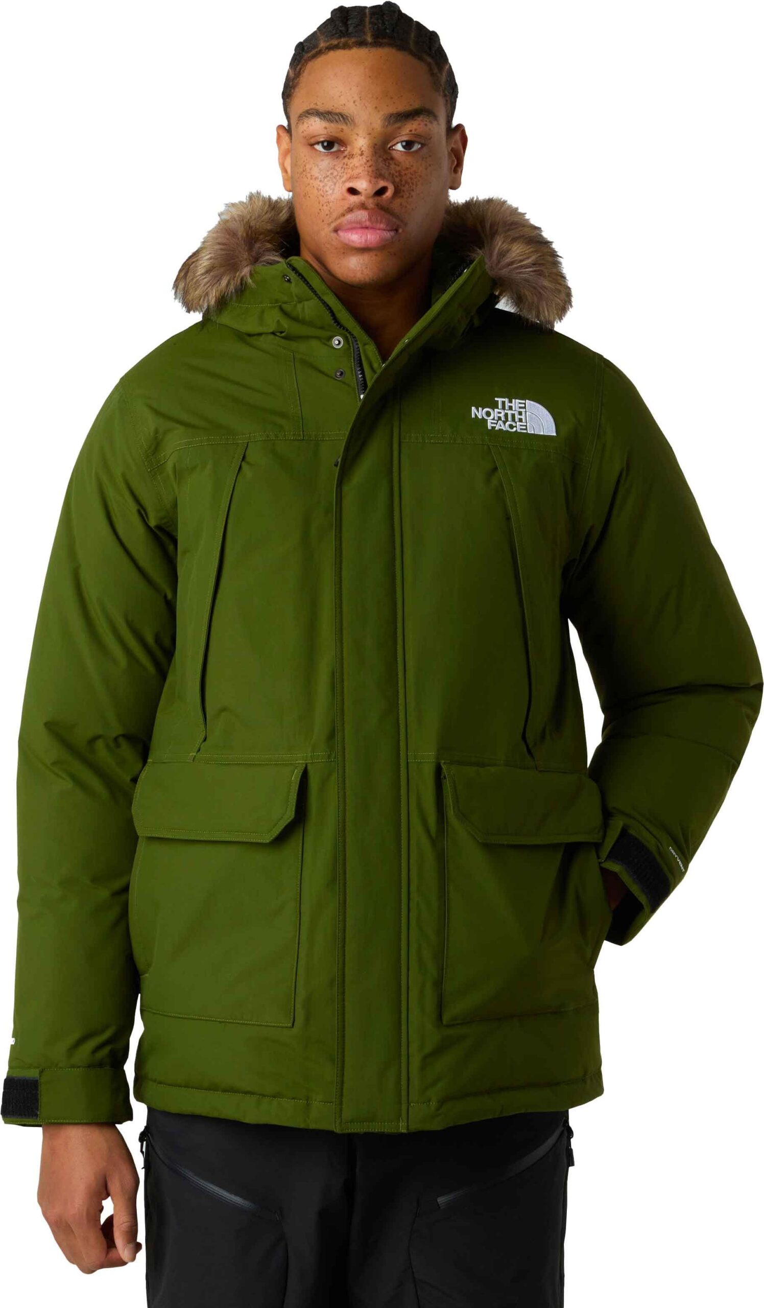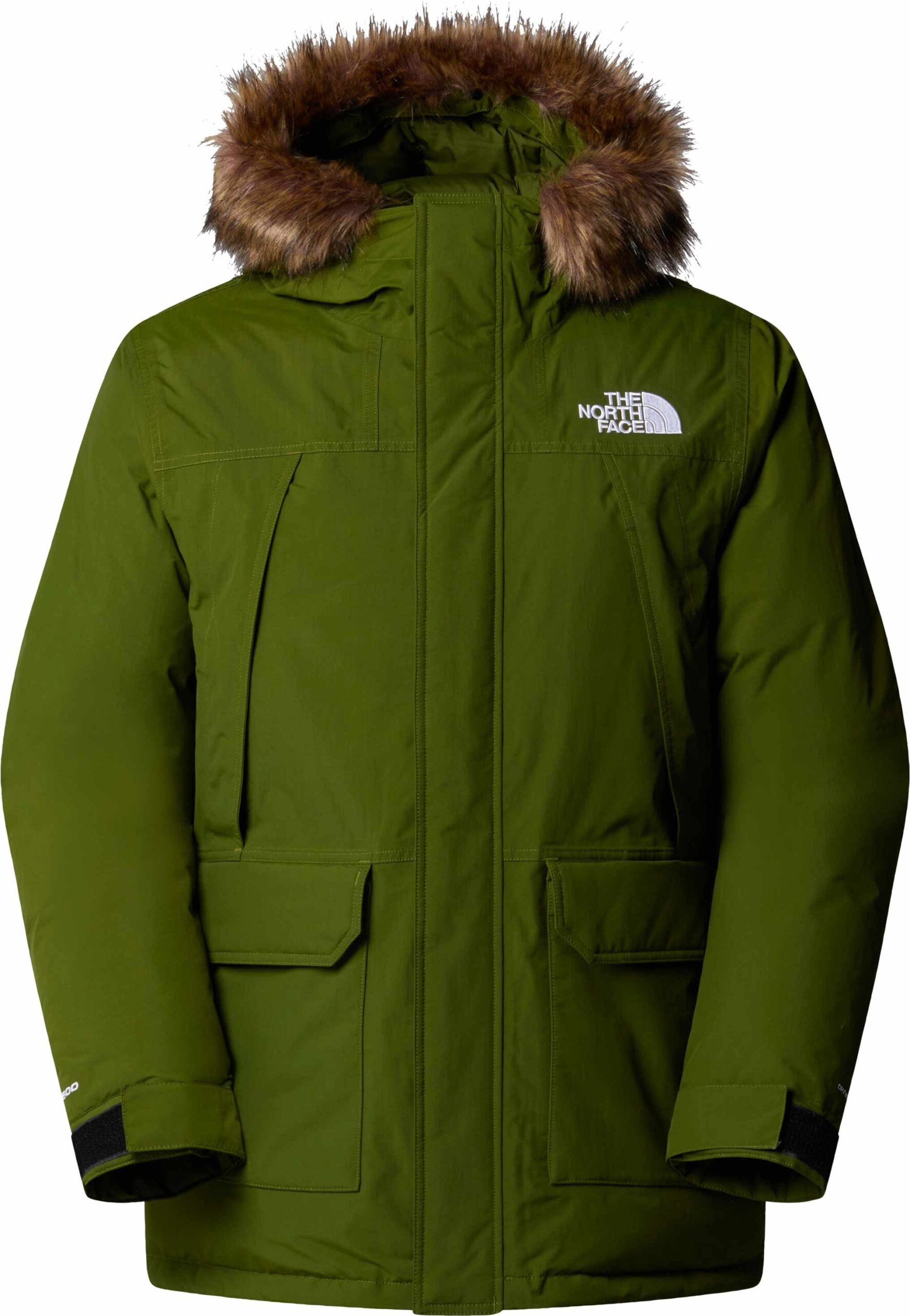 The North Face McMurdo Parka Woodland Green pour homme : parka hiver imperméable DRYVENT™, coupe-vent, isolée duvet d’oie, capuche fourrure synthétique, poignets réglables, multiples poches, style urbain.