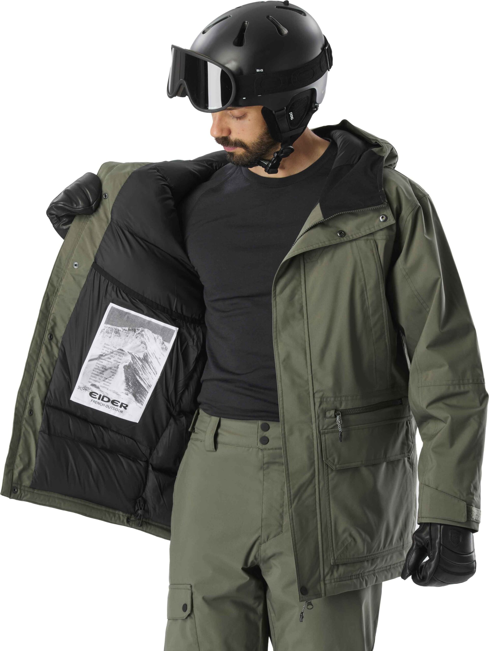 Parka EIDER Record Parka Black homme, membrane Defender® imperméable-respirante, isolation ciblée, capuche et ourlet ajustables, 6 poches zippées, coloris noir.