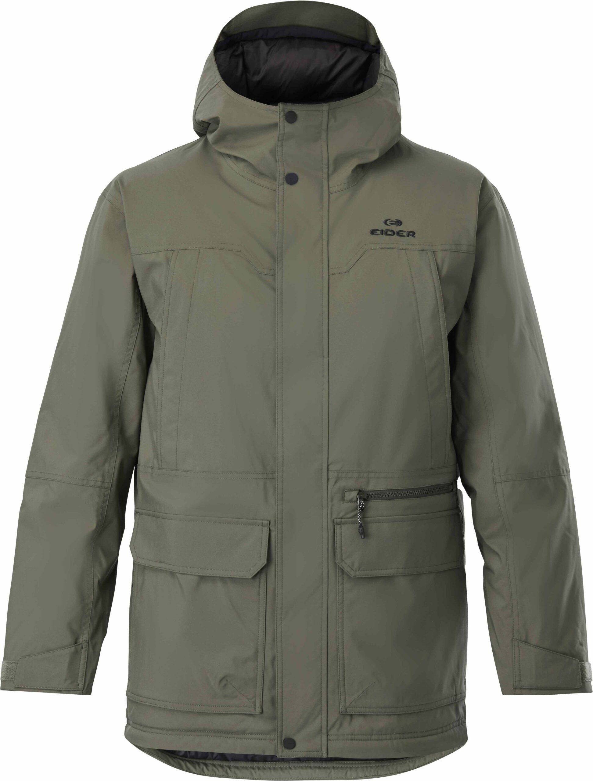 Parka Record Parka Khaki EIDER homme, membrane Defender® imperméable-respirante, isolation ciblée, coupe ajustée avec capuche réglable et multiples poches zippées.