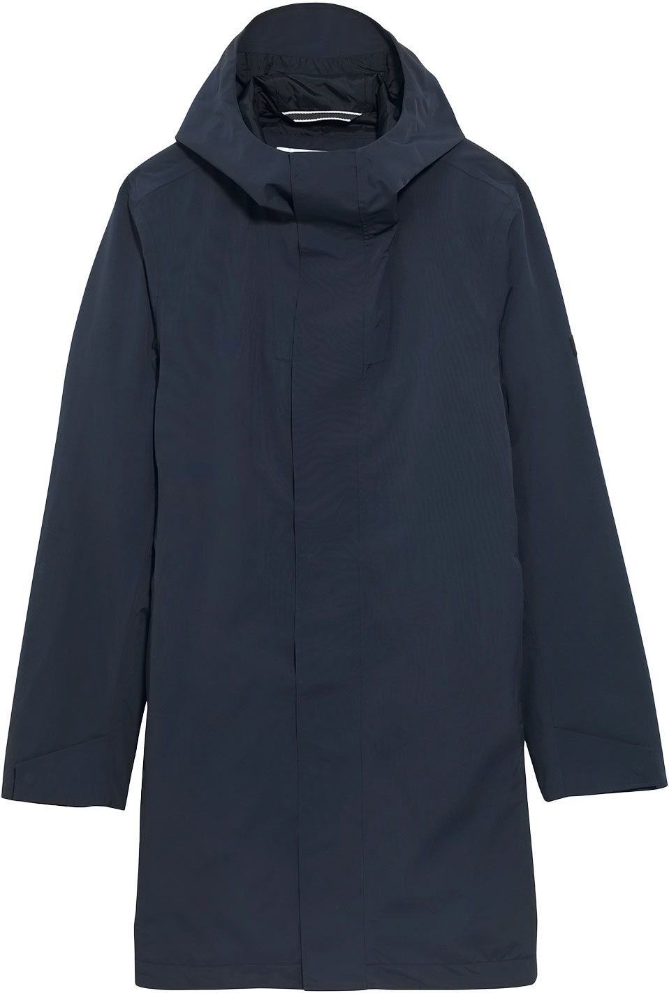 Une protection étendue est assurée par sa longueur généreuse, tandis que la capuche, réglable aisément via un cordon coulissant, procure une sensation de bien-être lorsque les conditions météorologiques se dégradent. L’abri des deux poches extérieures zippées accueille les mains, alors que la poche intérieure située au niveau de la poitrine, également dotée d’une fermeture éclair, garantit la sécurité des objets précieux. Les courants d’air sont efficacement stoppés par des poignets ajustables rapidement au moyen d’une patte pressionnée.