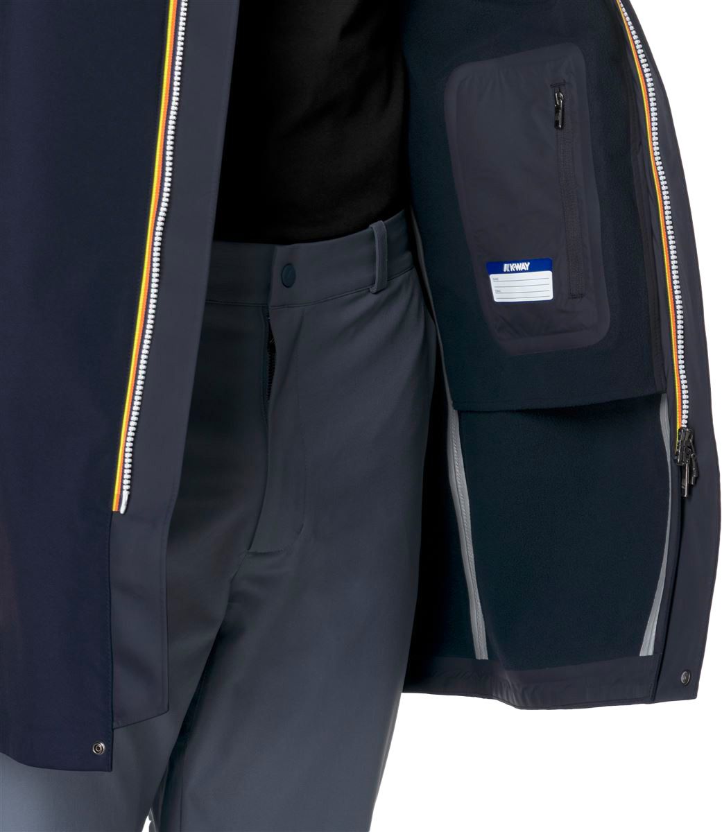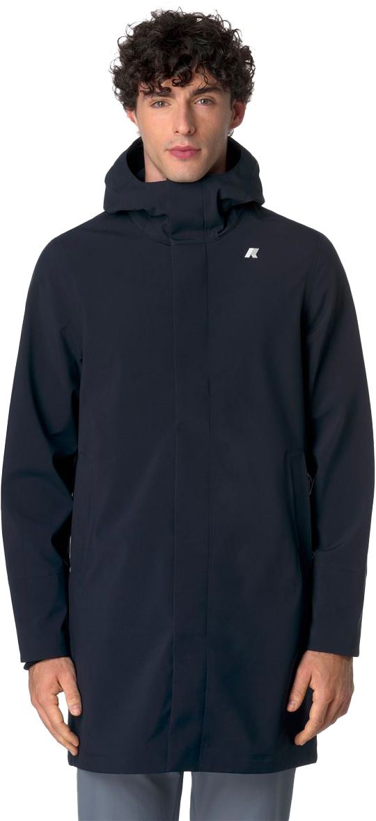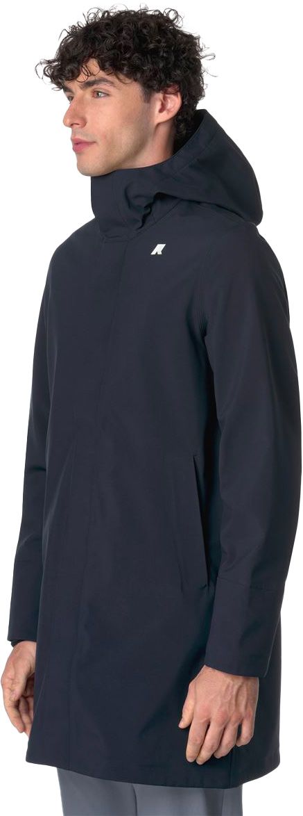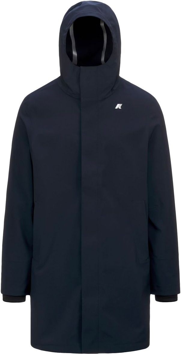 K-way Thomas Bonded Blue Depht : parka longue pour homme coupe-vent, imperméable et doublure polaire hydrofuge pour chaleur et protection automnale.