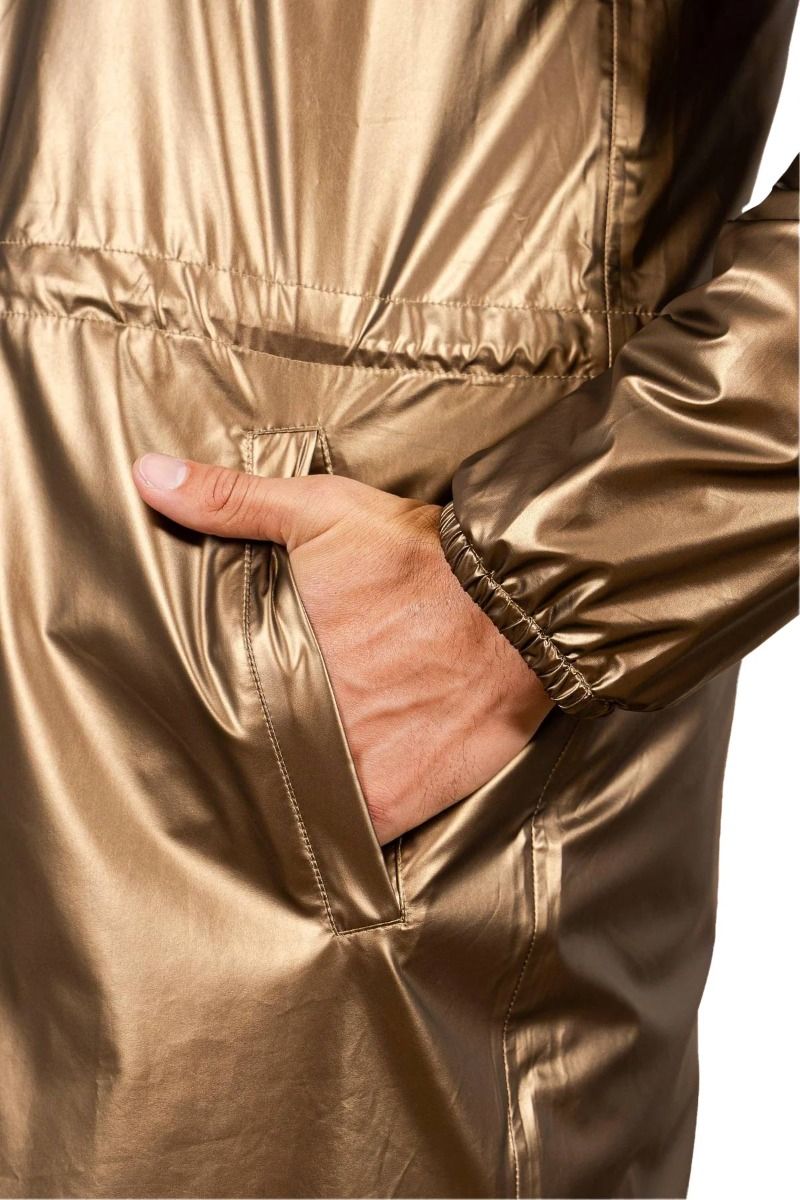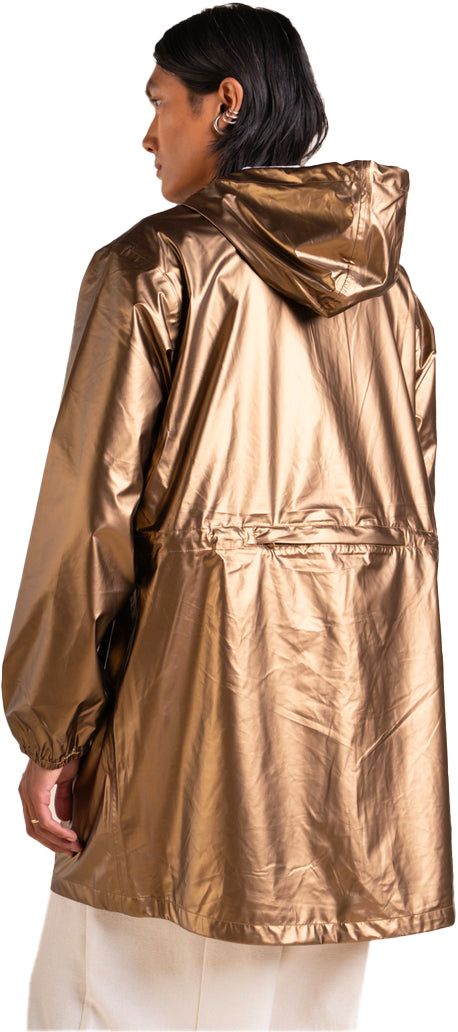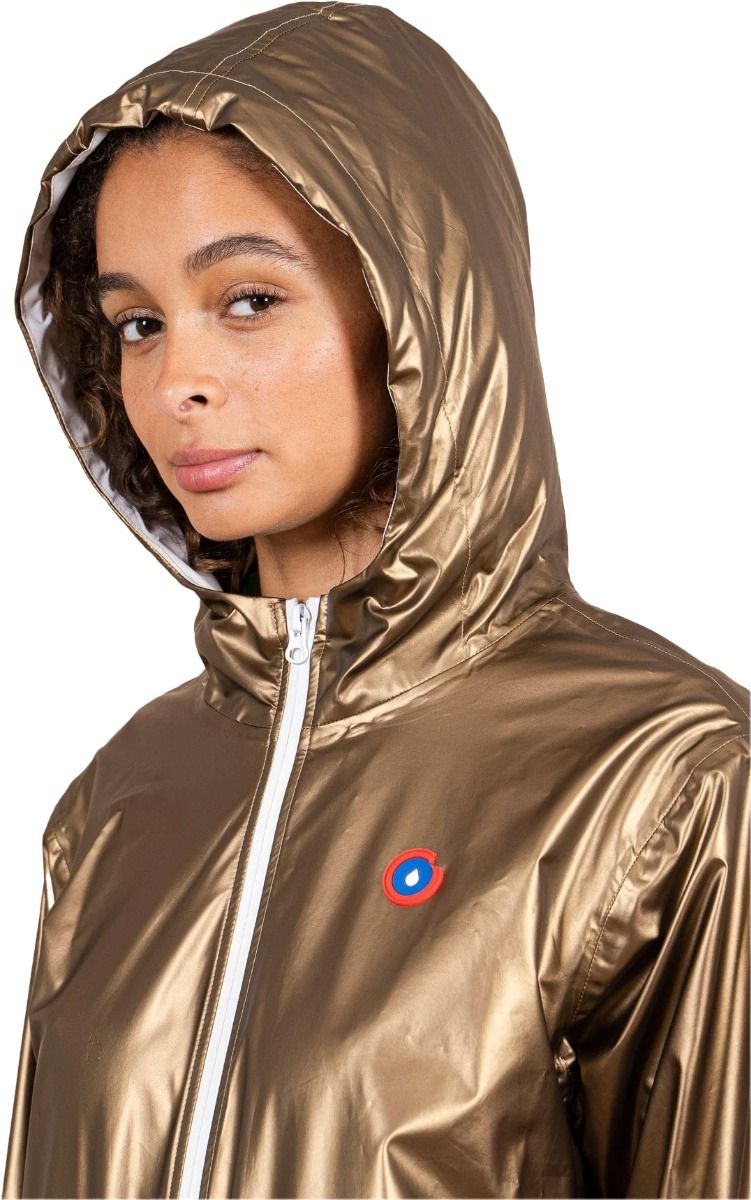 Veste imperméable mixte Flotte Amelot Tech Gold, coupe ajustable par cordon de taille, tissu et coutudes 100 % étanches, se replie en sac à dos ou bandoulière, matière recyclée.