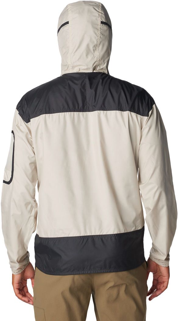 Le coupe-vent Columbia Challenger™ II Windbreaker Dark Stone, Shark protège du vent et des intempéries grâce à son tissu déperlant, son demi-zip, sa capuche siglée, sa poche manche et sa taille ajustable.