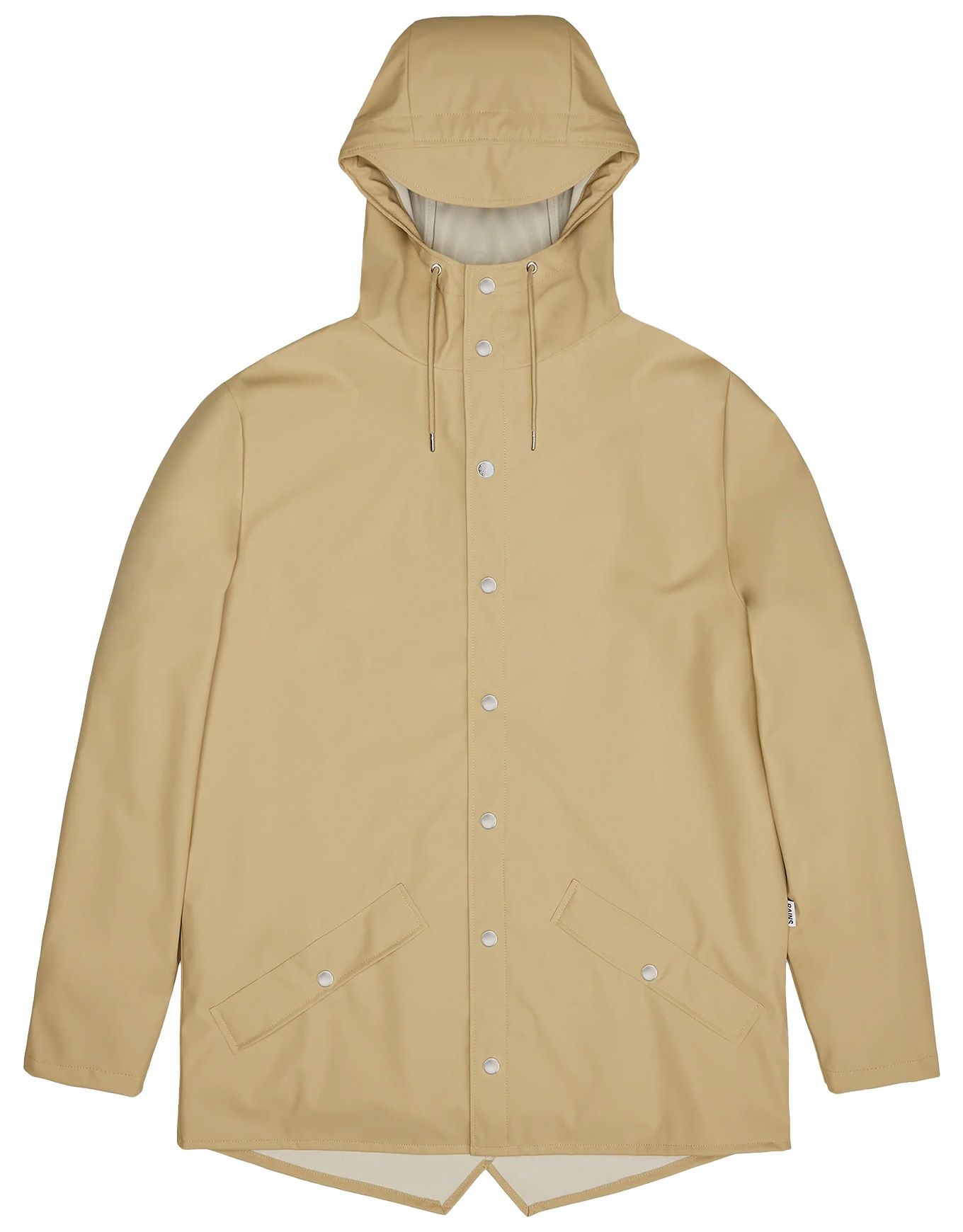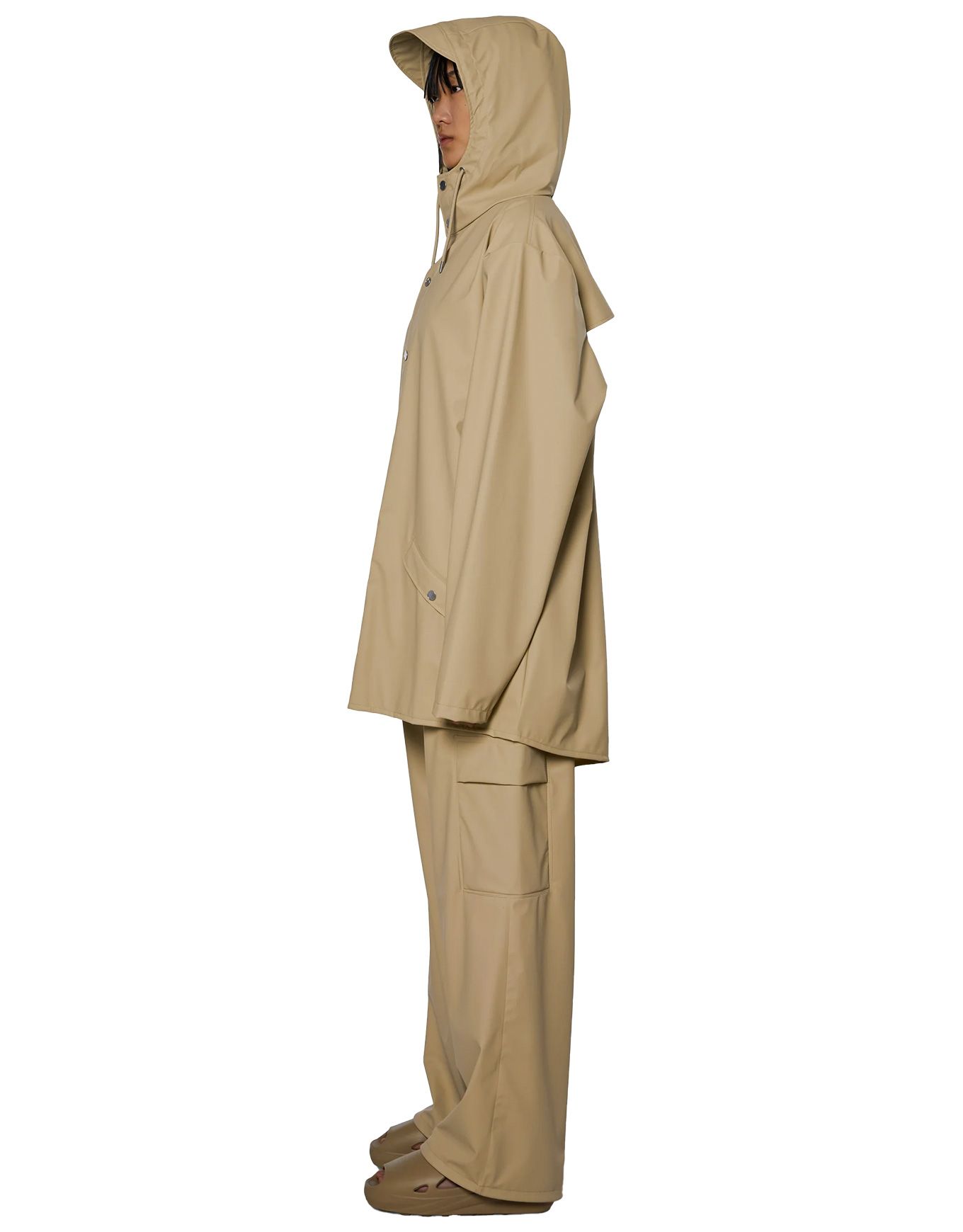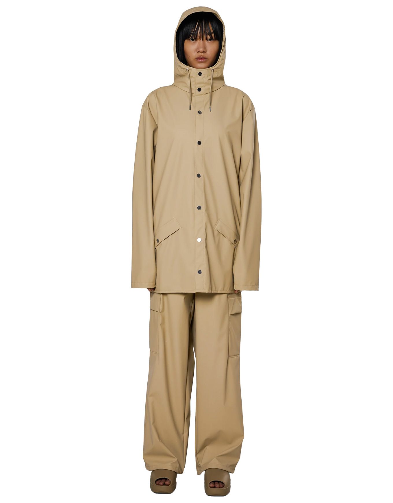 Veste unisexe Jacket Sand de Rains, imperméable et coupe-vent avec coutures soudées, capuche ajustable et ourlet réglable pour une protection urbaine optimale sous la pluie.