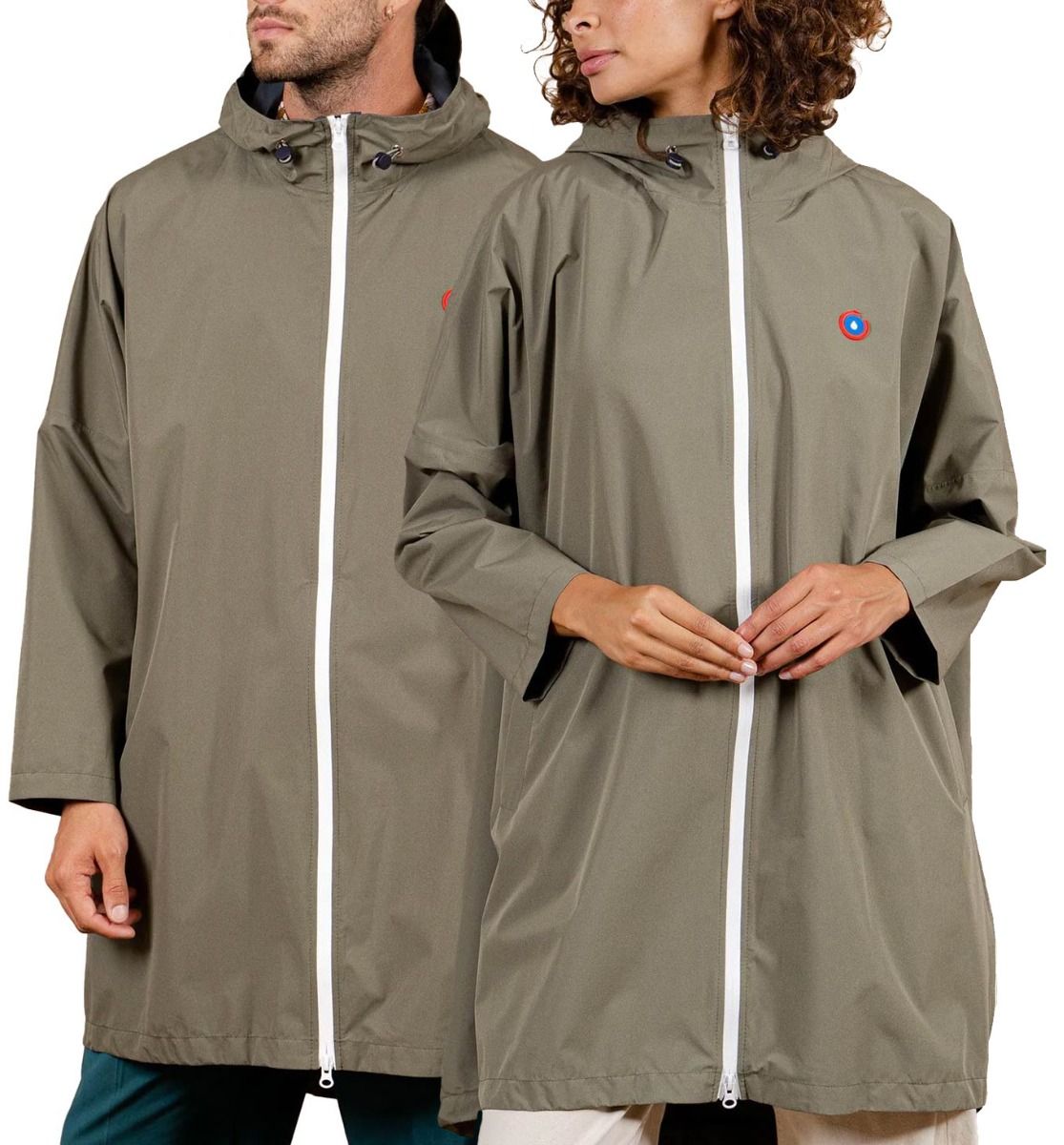 Une cape de pluie unisexe, la Liberte Kaki est proposée par Flotte, marque française engagée dans l’écoresponsabilité. Légère, zippée et imperméable, cette cape constitue un allié précieux pour le quotidien. Pour les déplacements à vélo sous la pluie, elle offre une mobilité optimale grâce à des ouvertures latérales. Sa capuche munie d’une petite visière s’ajuste à toutes les morphologies, tandis que sa transformation rapide en sac à dos ou banane s’effectue en quelques secondes.