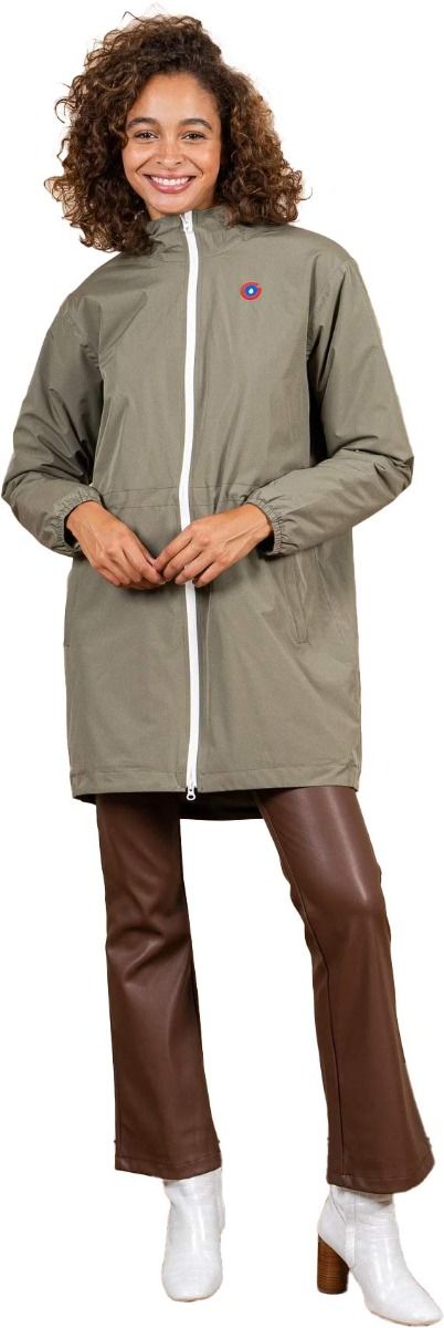 Veste longue imperméable doublée polaire Pompidou Kaki unisexe Flotte, coupe ajustable par ceinture, tissu et coutudes 100 % étanches, matière recyclée.