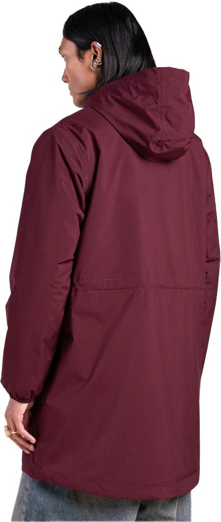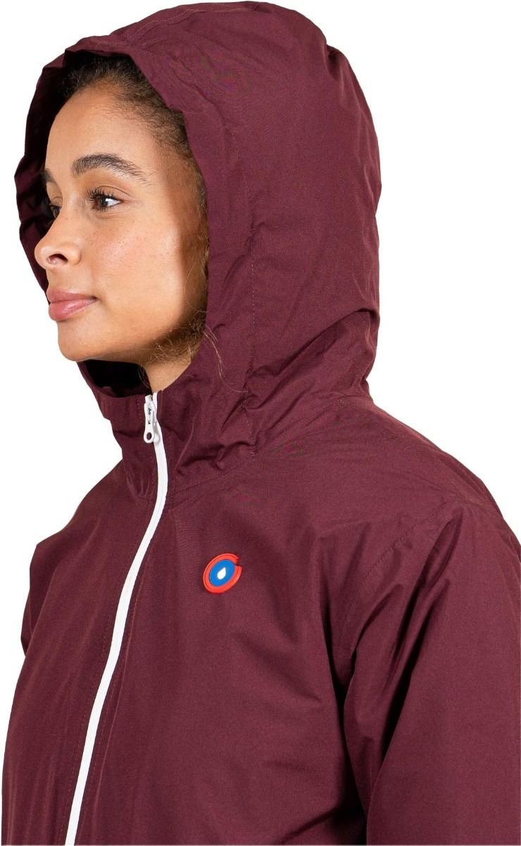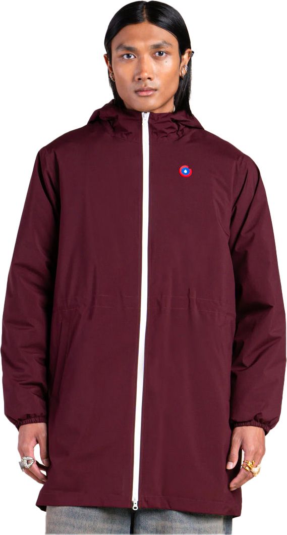 Veste longue imperméable Pompidou Prune unisexe Flotte, doublée polaire recyclée, coupe ajustable par double curseur, imperméabilité totale tissu et coutures.