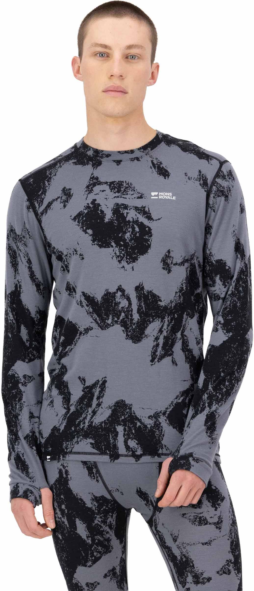 Mons Royale Cascade Merino Base Layer Long Sleeve Mtn Pixel Grey