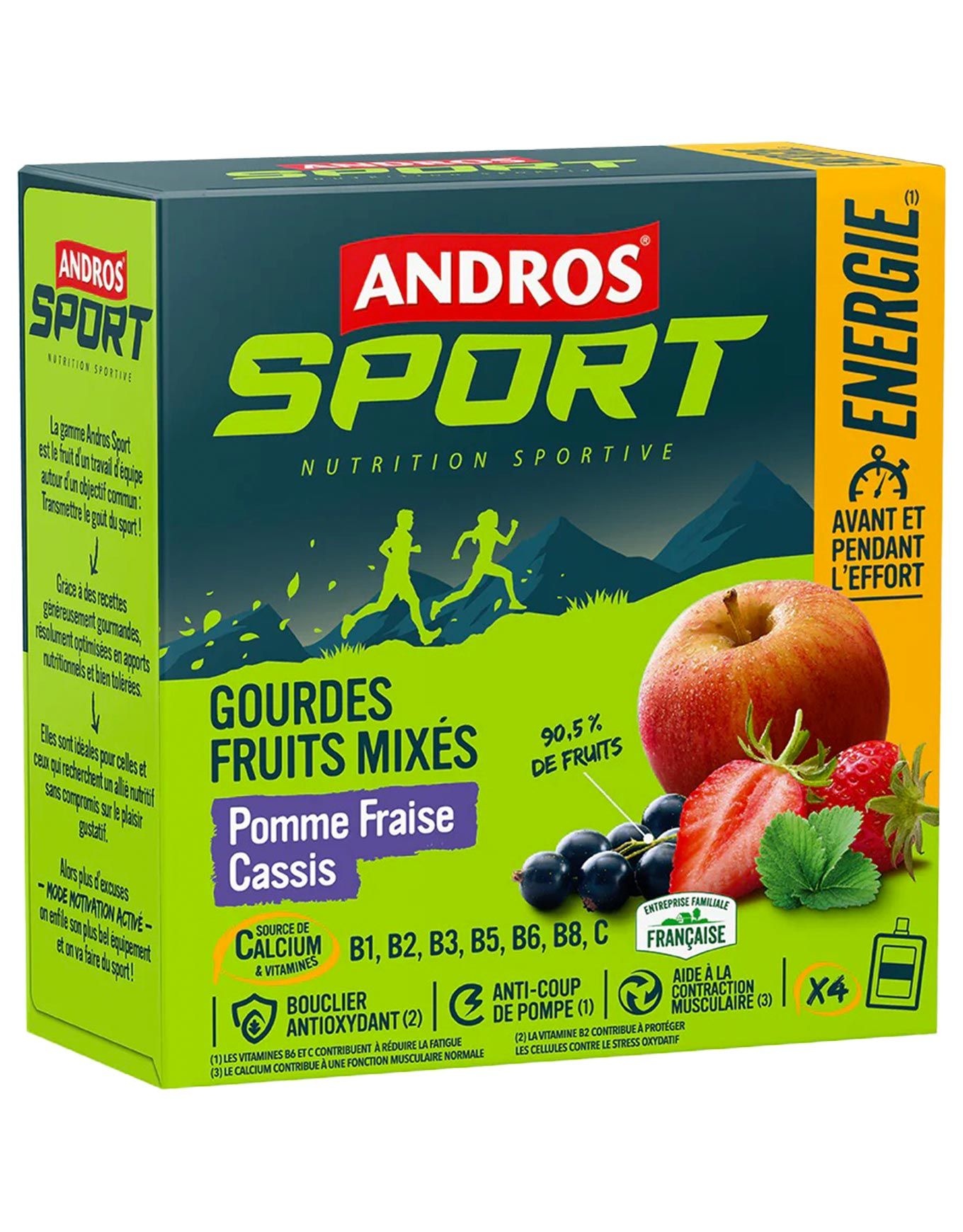 Le pack de 4 gourdes Andros Sport aux fruits mélangés Pomme-Fraise-Cassis constitue une solution idéale pour dynamiser votre vitalité. L’utilisation de ce produit est recommandée en tant qu’en-cas pré-entraînement ou à intervalles de trente minutes durant l’effort, avec une formulation associant glucose et fructose assurant à la fois une énergie immédiate et une glycémie régulière. Enrichi en vitamines B et E, calcium et oligo-éléments essentiels, il contribue au maintien de la contraction musculaire, à la lutte contre le stress oxydatif et à l’hydratation corporelle. La texture liquide et la présence de fibres permettent une digestion en douceur, garantissant une stimulation énergétique sans inconfort. Pratique à consommer et à transporter, ce complément vous accompagne aussi bien en amont qu’en cours d’activité physique pour progresser avec dynamisme ! Découvrir les catégories associées Barres et purées Alimentation
