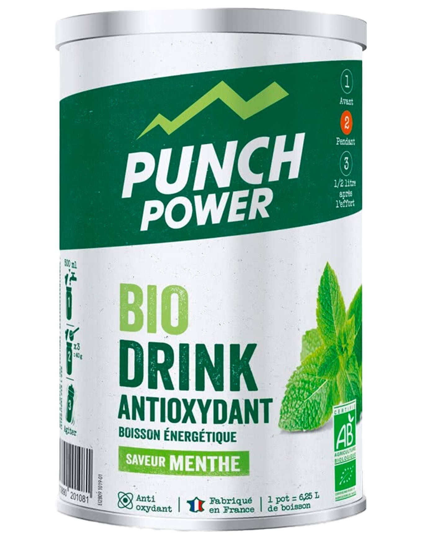 Biodrink Menthe Antioxydant est une préparation pour boisson énergisante de Punch Power, conçue pour siroter en plein effort afin de couvrir les besoins énergétiques des athlètes. Cette boisson antioxydante et sans gluten mélange plusieurs types de glucides pour garantir une énergie prolongée et une réhydratation efficace durant l’activité physique. Grâce à sa teneur adéquate en vitamine C, elle protège les cellules du stress oxydatif. Sans colorants ni conservateurs, Biodrink favorise la réhydratation, soutient les performances et participe au métabolisme énergétique. Pratique, diluez simplement 3 dosettes (40 g) dans 500 ml d’eau et buvez par petites gorgées tout au long de l’effort. Biodrink répond ainsi aux exigences des sportifs cherchant à améliorer leurs performances et leur hydratation en endurance. Découvrir les catégories associées Boissons sportives énergétiques Alimentation