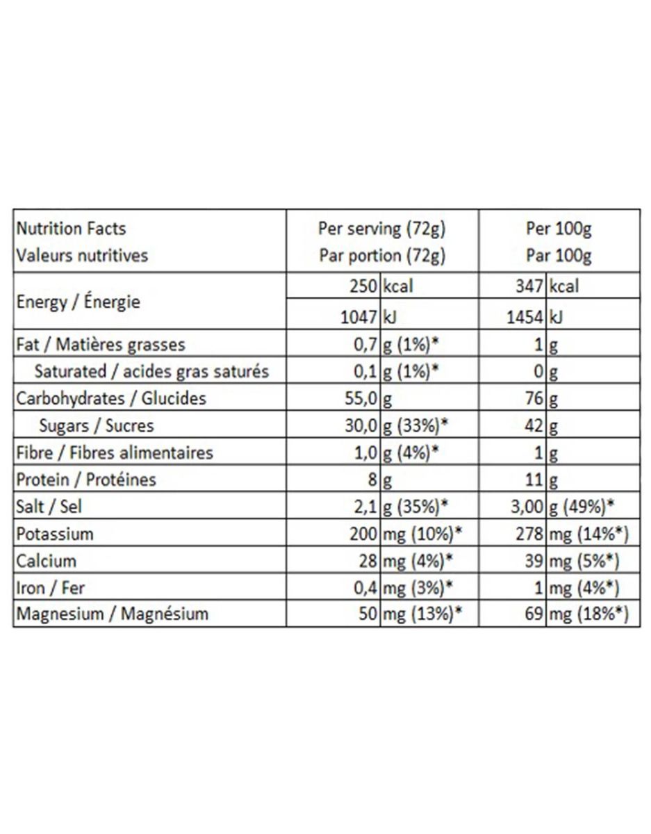 - 55 g de glucides : mélange de sucres simples et complexes d’origine naturelle