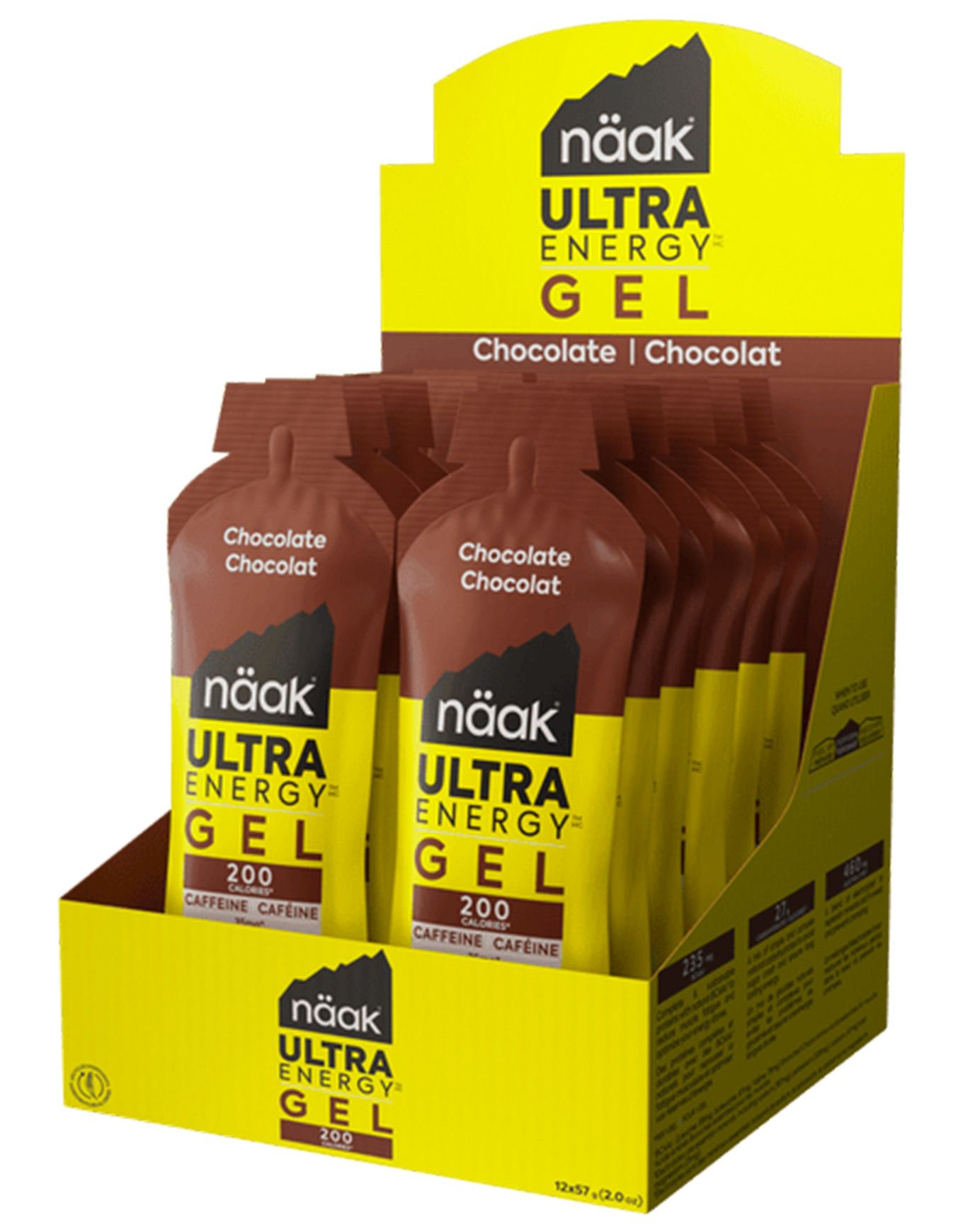 Gel Ultra Energy™ Chocolat 12 x 57 g NAAK : 200 kcal semi-liquides, ingrédients upcyclés, faible charge glycémique pour énergie durable en ultra-trail.