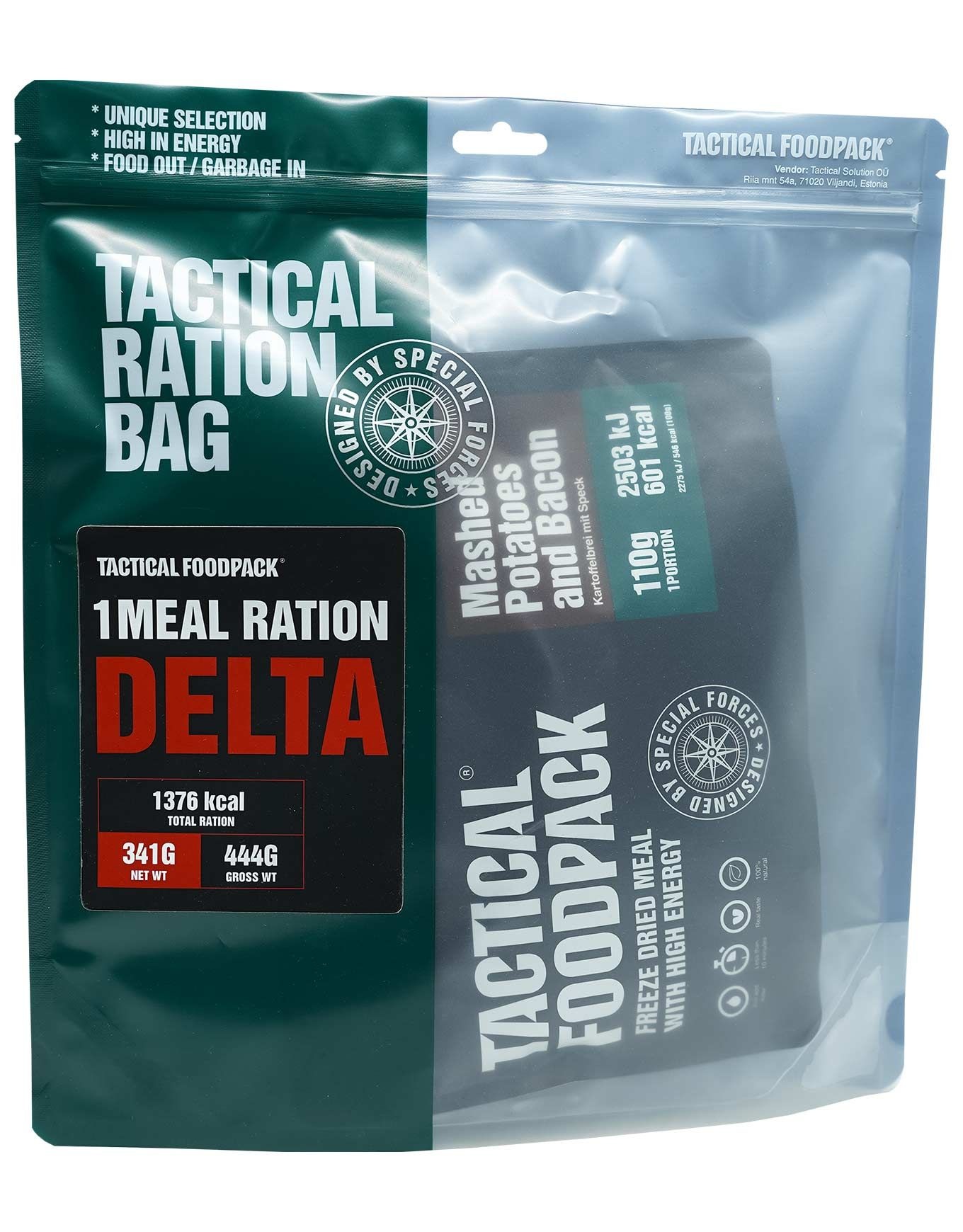 Le Ration 1 Repas Delta signé Tactical Foodpack est un combo d’aliments déshydratés conçu pour fournir énergie et nutriments essentiels lors de longues randonnées ou en contexte de survie. La lyophilisation garde intactes les arômes, les saveurs et les qualités nutritionnelles. En quelques minutes, vos plats sont prêts, vous redonnent de l’énergie et vous permettent de repartir vers le prochain sommet. Légers et ultra-compacts, ces sachets s’insèrent sans peine dans le sac et optimisent l’espace. Le contenu inclut un plat principal Tactical Foodpack, plusieurs collations et une boisson énergisante. Les accessoires fournis : cuillère, gobelet Tactical et lingette désinfectante. Découvrir les catégories associées Packs Alimentation