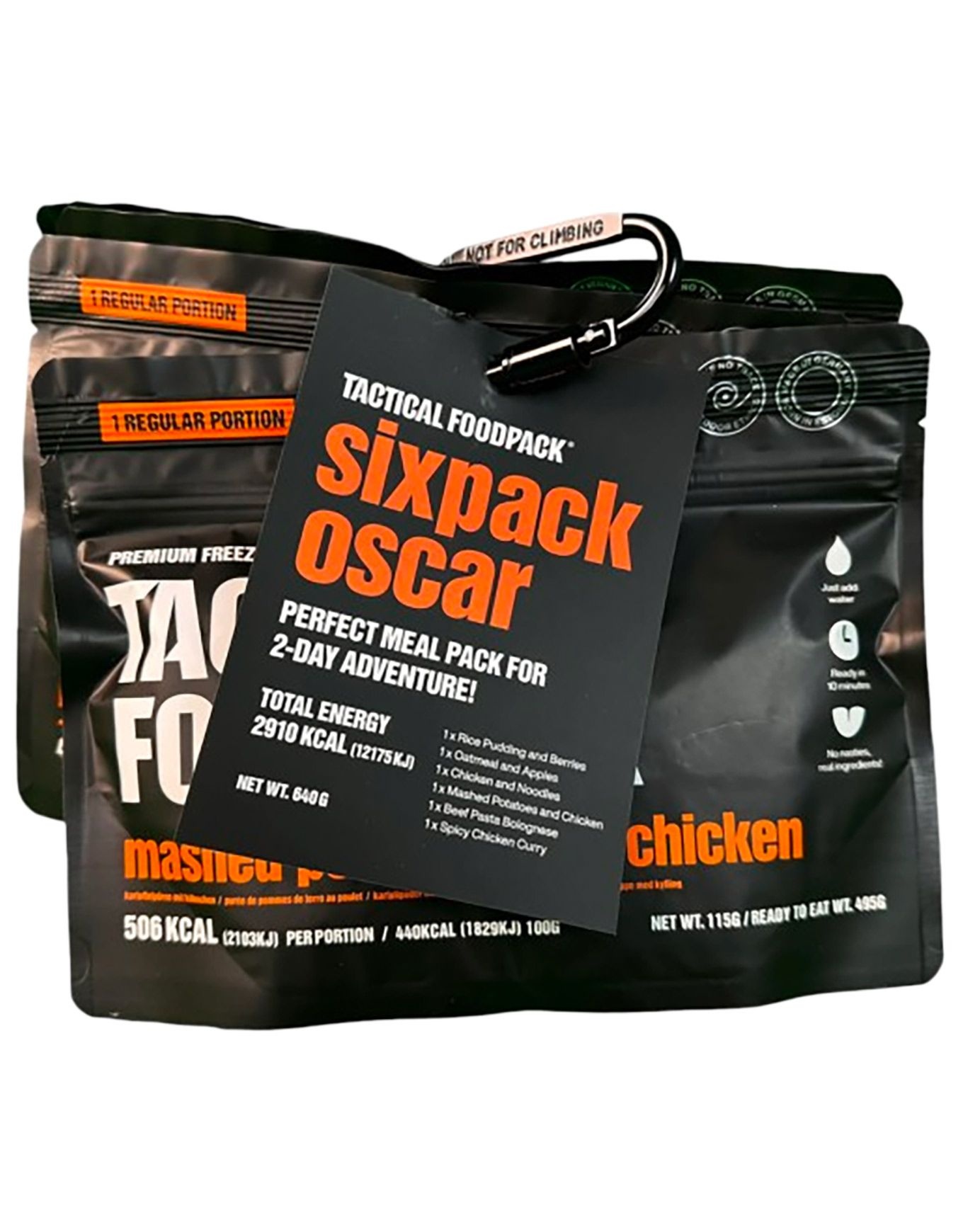 Conçu pour nourrir une personne durant 48 heures, le Sixpack Oscar rassemble 6 repas lyophilisés exempts de conservateurs et d’additifs. La lyophilisation assure la conservation des saveurs, des arômes et des apports nutritionnels. En quelques minutes, des mets savoureux sont préparés, permettant de récupérer rapidement l’énergie nécessaire pour poursuivre l’ascension. Ce pack propose une sélection de préparations aux saveurs diversifiées, mêlant recettes sucrées et salées.