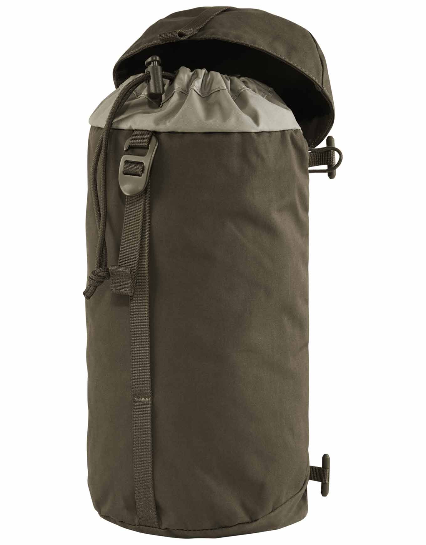 Fjällräven Singi Side Pocket : poche latérale en G-1000 HeavyDuty Eco S, résistante et imperméable, s’ajoute aux sacs Singi pour ranger gourde ou petits outils à portée de main, rabat pare-neige inclus.