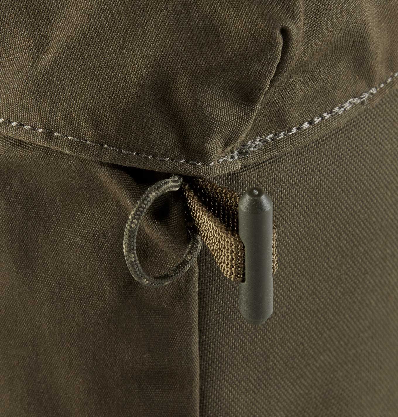 | G-1000® HeavyDuty Eco S | Tissu G-1000® renforcé : la version HeavyDuty est enduite de cire Greenland Wax sur les deux faces, offrant une robustesse maximale. Moins perméable à l’air que le G-1000® standard, elle privilégie la solidité face à l’aération. On la retrouve donc sur les zones d’usure intense et de nombreux sacs. La variante Eco S, plus fine et légère, est composée de polyester recyclé et de coton biologique, assouplissant la matière tout en conservant sa résistance. |