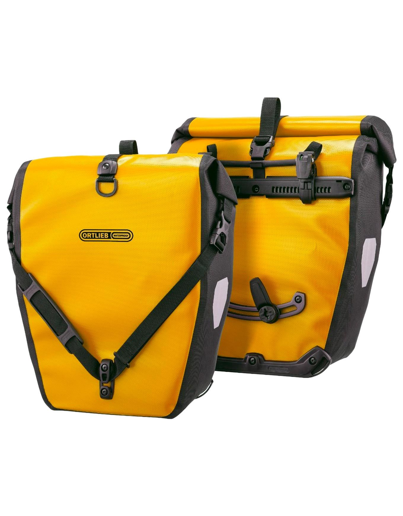 Sacoches de roue arrière Ortlieb Back-Roller QL2.1 40L Sunyellow/Black, étanches 2×20 L, fixation rapide, fermeture enroulable, poche intérieure et éléments réfléchissants.