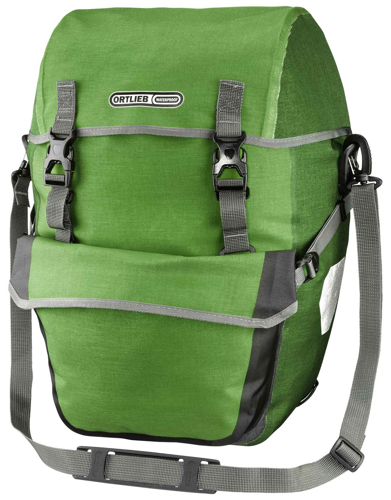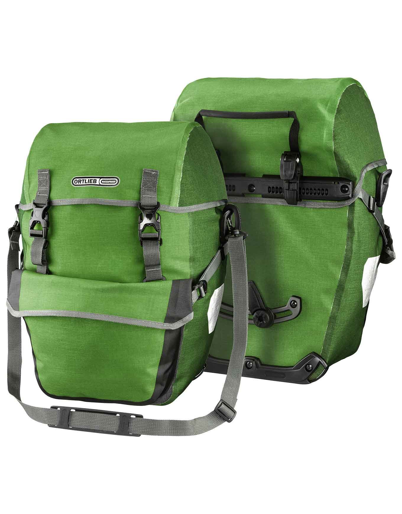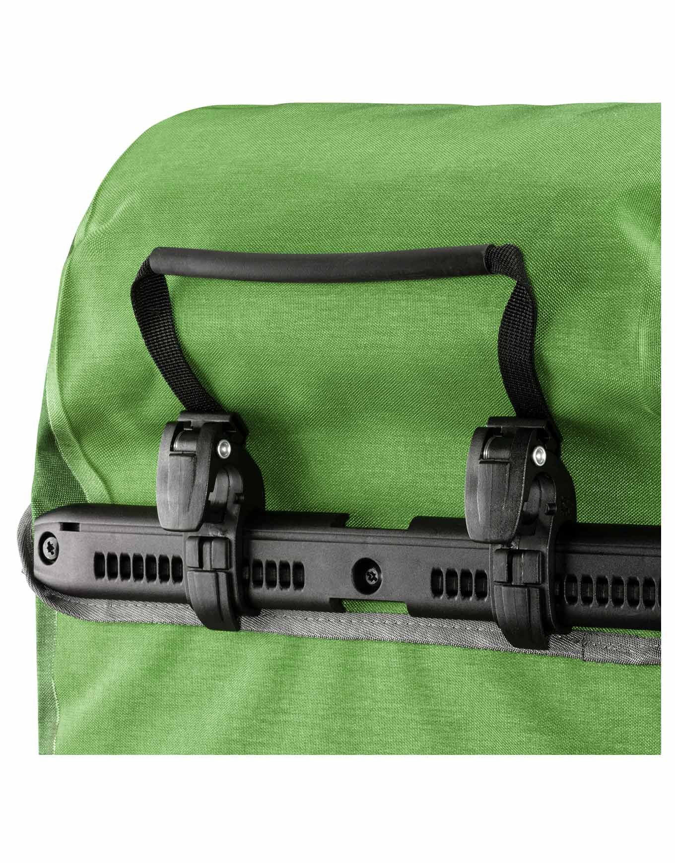 Sacoches arrière Ortlieb Bike-Packer Plus Kiwi Moss Green, 2×21 L, étanches Quick Lock 2.1, fermeture capuchon clips, sangle bandoulière, poche intérieure et réfléchissants.