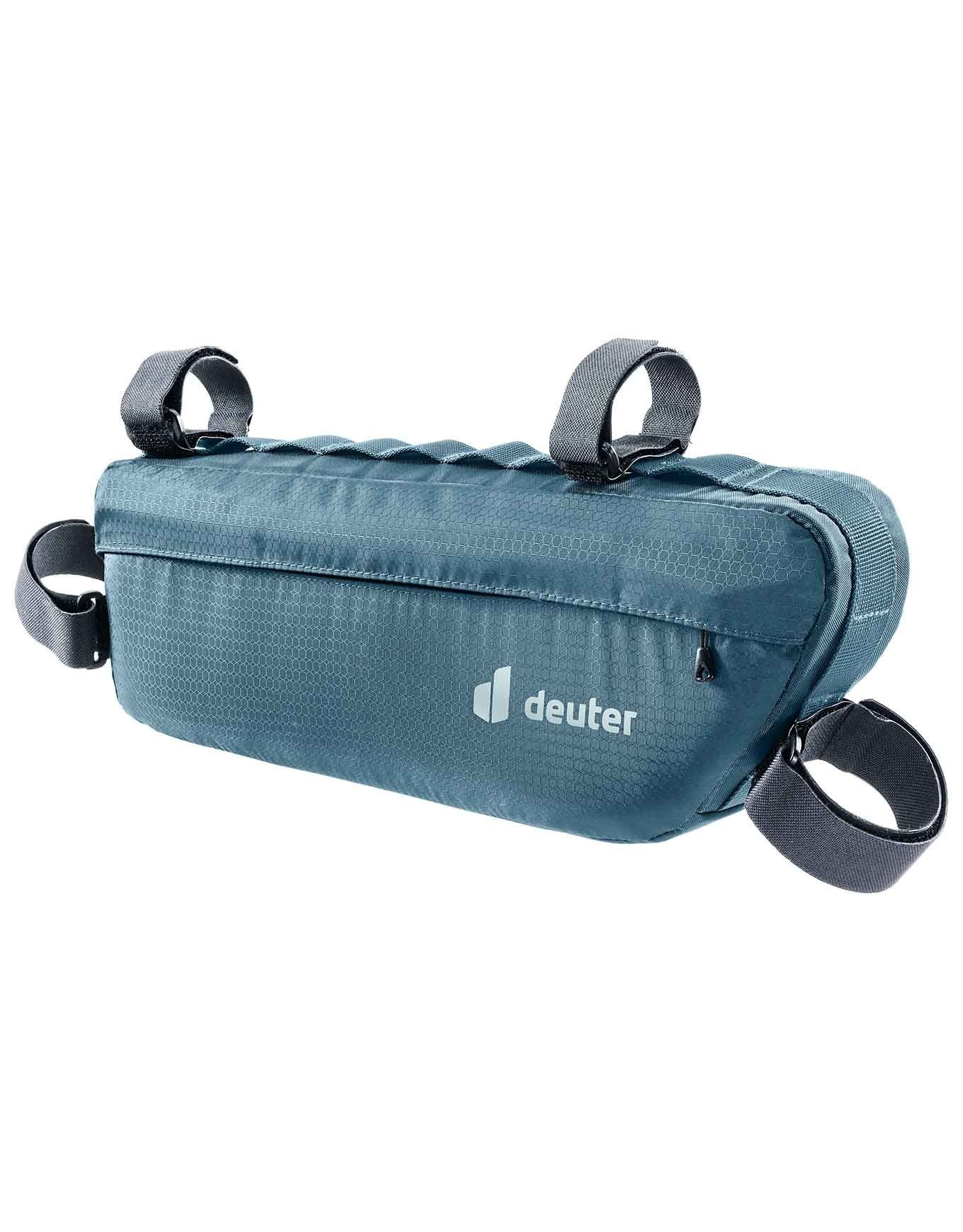 Sacoche cadre Deuter Mondego FB 4 Atlantic, 4 L en polyamide 420D robuste, équipée d’un compartiment principal zippé, d’une poche latérale, de 4 boucles velcro réglables et d’éléments réfléchissants pour vos sorties vélo urbaines ou sportives.
