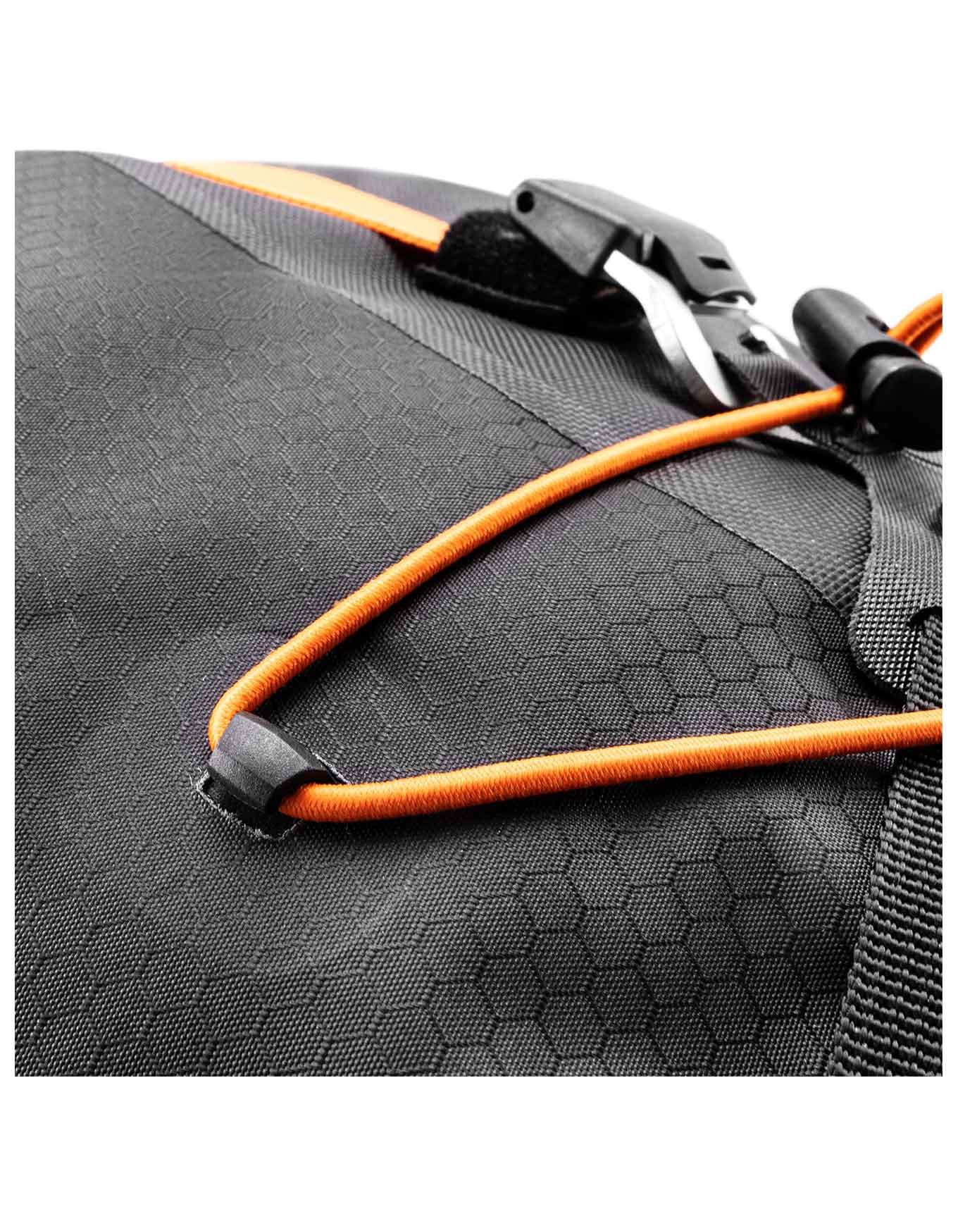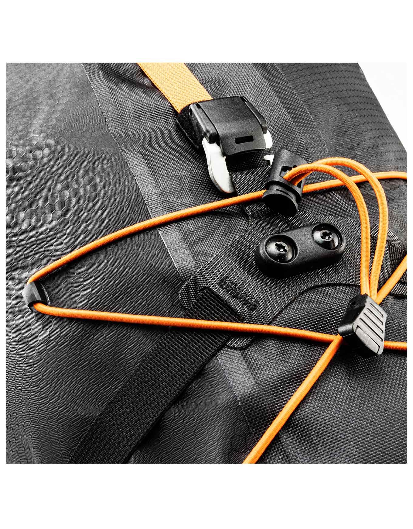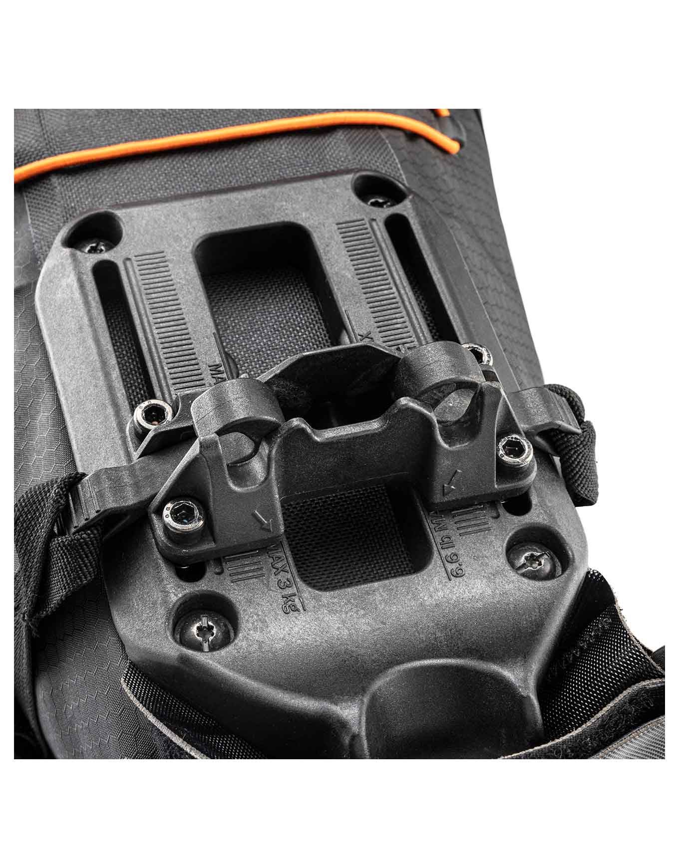 Le choix de la Seat-Pack QR se justifie par sa simplicité de montage : le dispositif Seat-Lock assure la fixation par levier sur le rail de selle, complétée par une robuste sangle velcro.