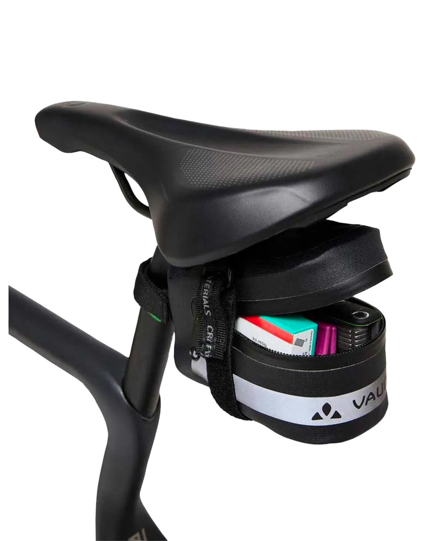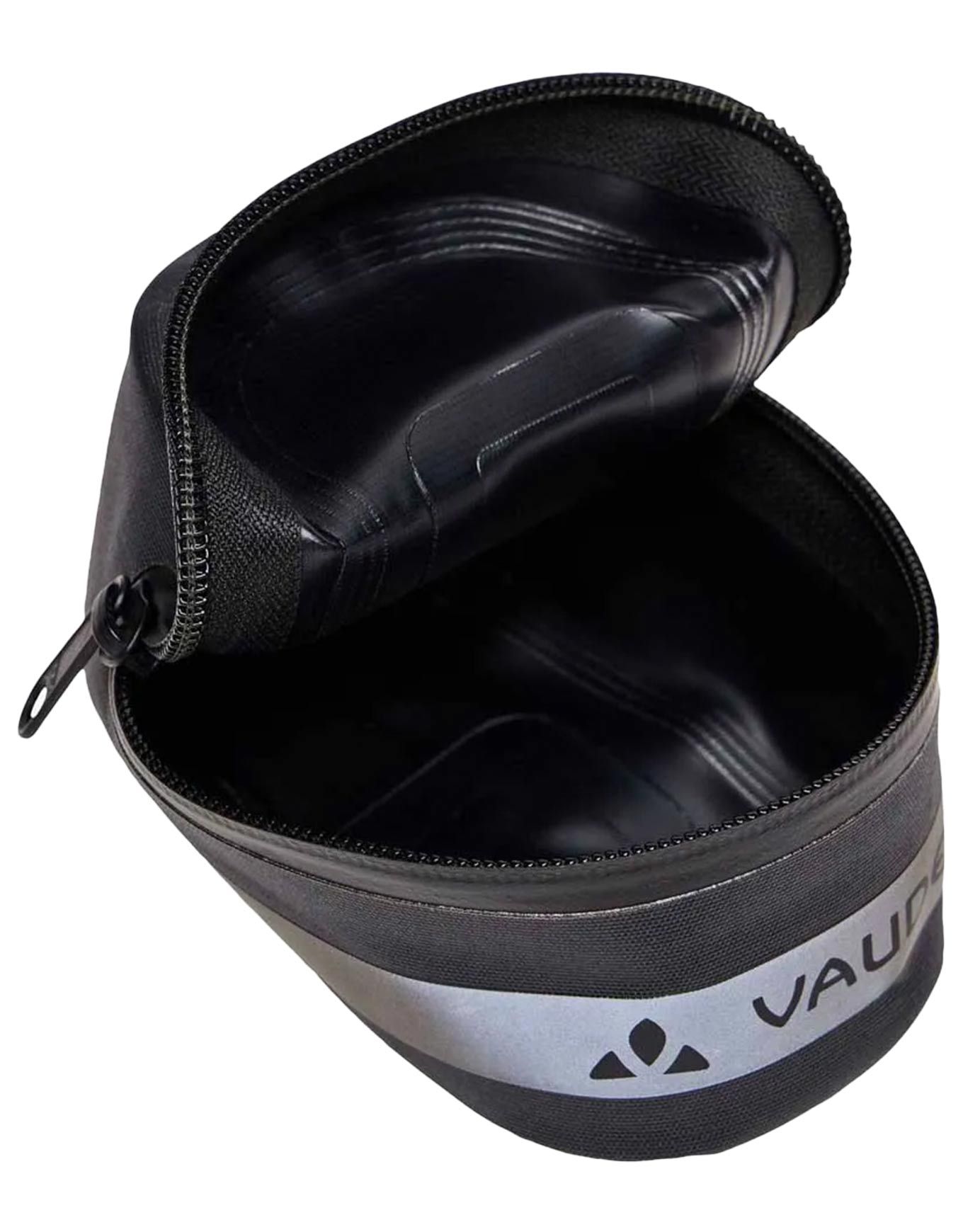 Sacoche de selle Vaude Tool Proof L imperméable en polyamide recyclé, 1 L, fixation velcro, logo réfléchissant et attache lampe arrière.