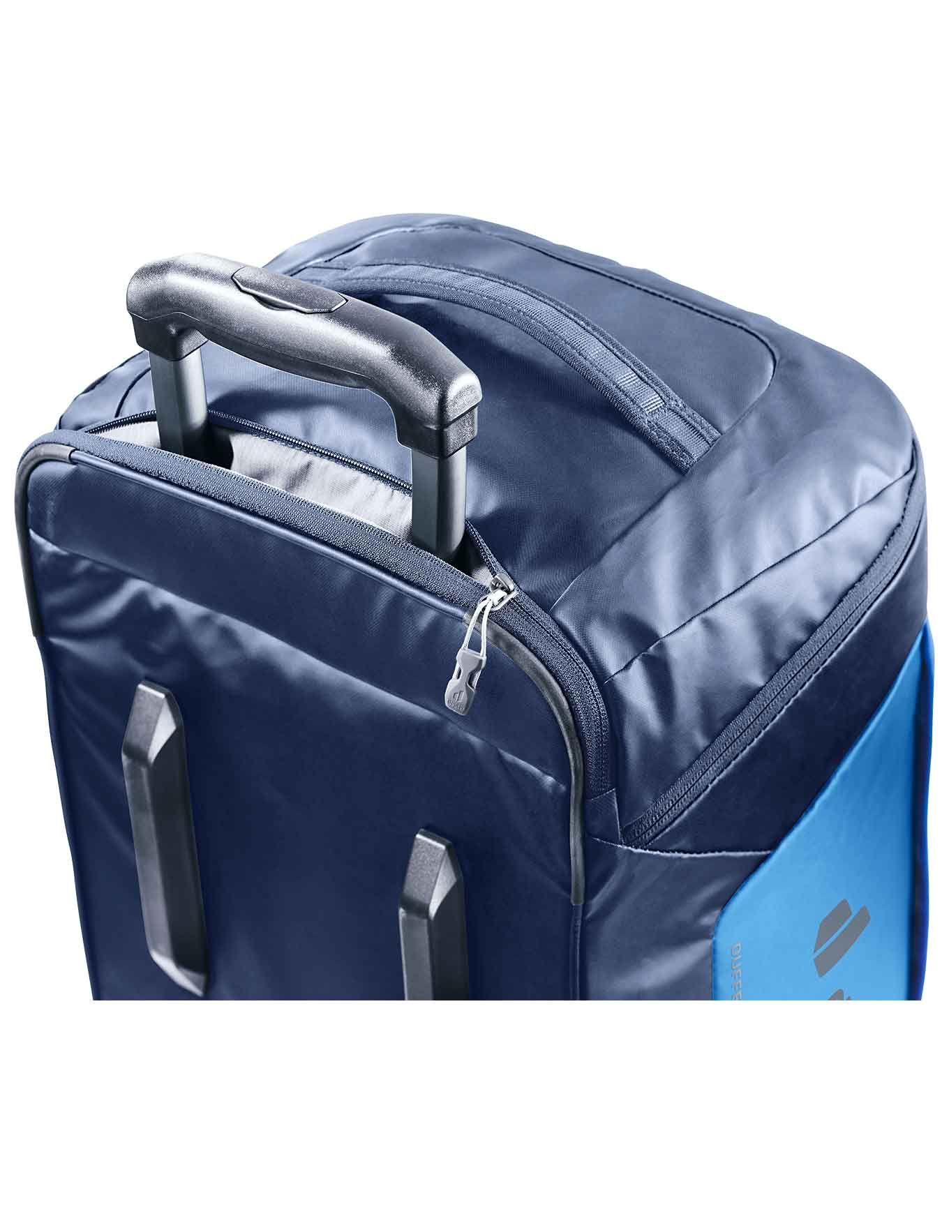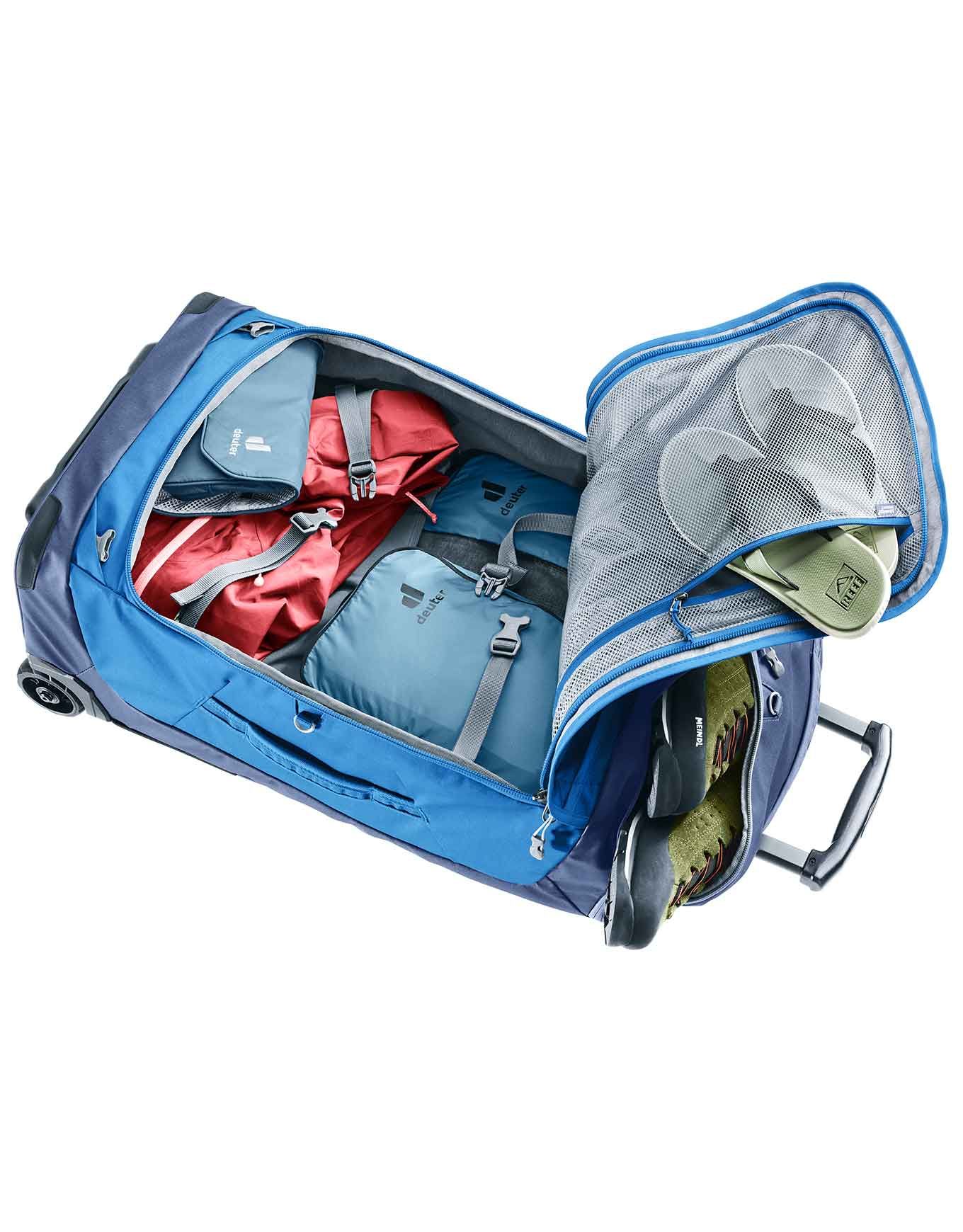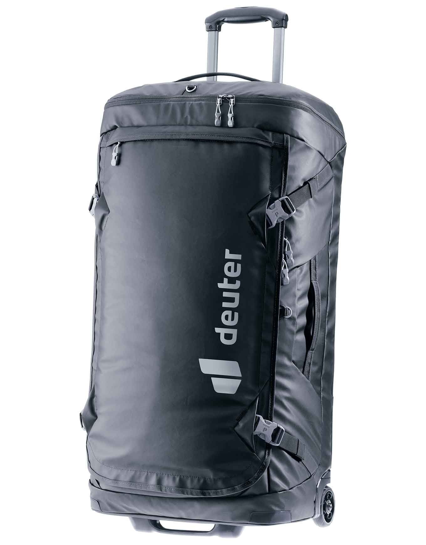 Sac de voyage Deuter Duffel Pro Movo 90 Black à roulettes silencieuses, bretelles rangeables et matière hydrofuge protégeant efficacement vos affaires.