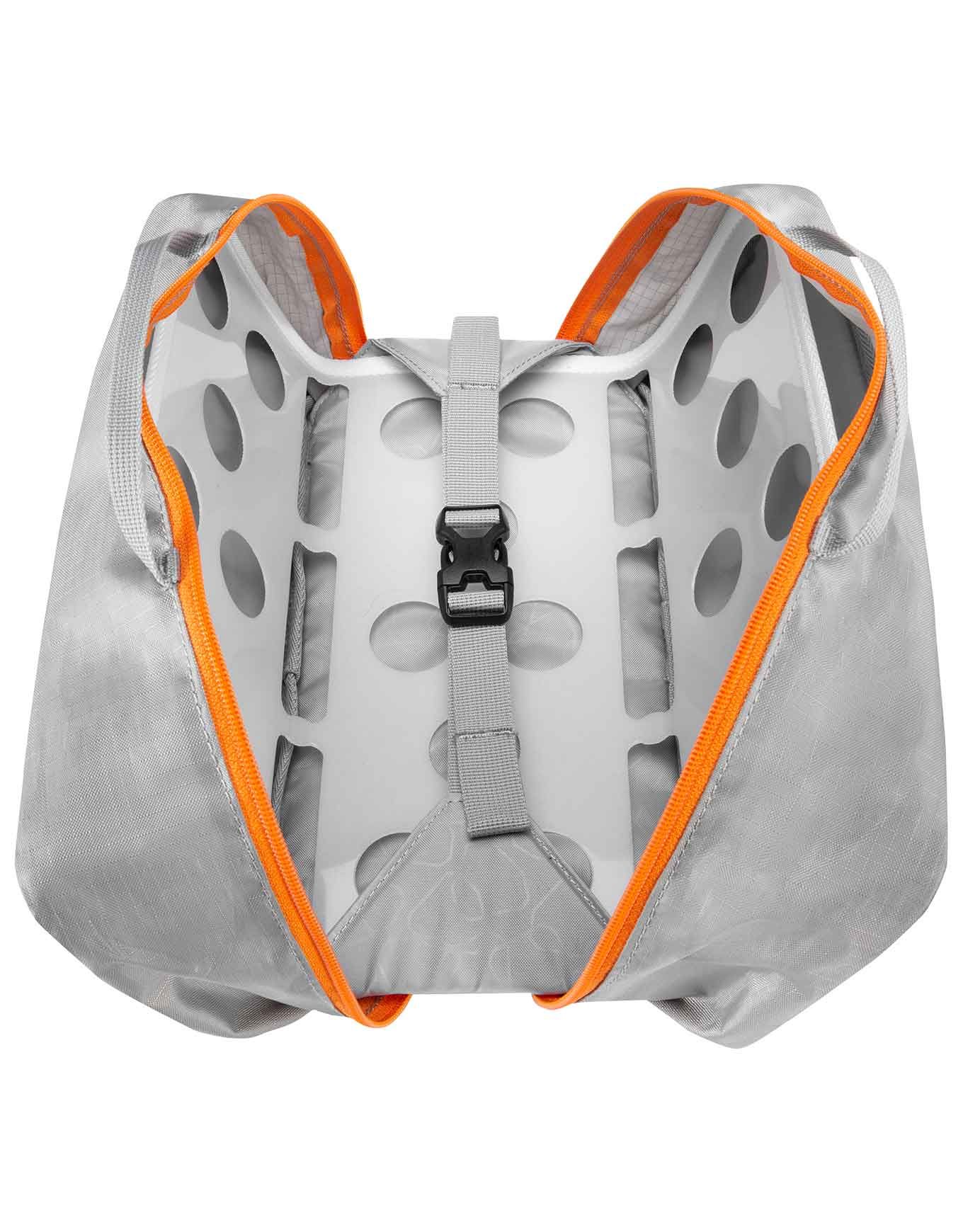 La fermeture à glissière bidirectionnelle facilite l’accès et le remplissage du sac, tandis qu’une poignée de transport facilite le transfert de la sacoche de vélo vers une tente ou une chambre d’hôtel.