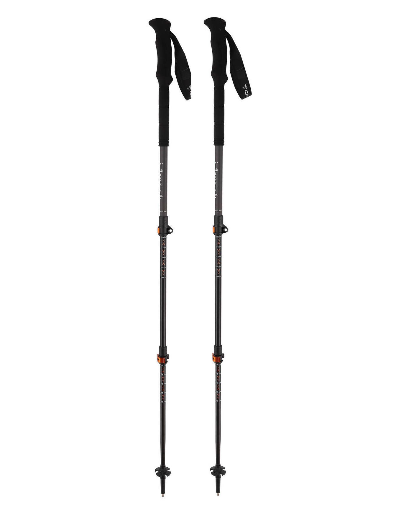 Bâton de randonnée télescopique Camp Backcountry Pro 2.0, 3 brins carbone/alu, réglable 63-135 cm, poignée mousse, clips alu, pointe carbure.