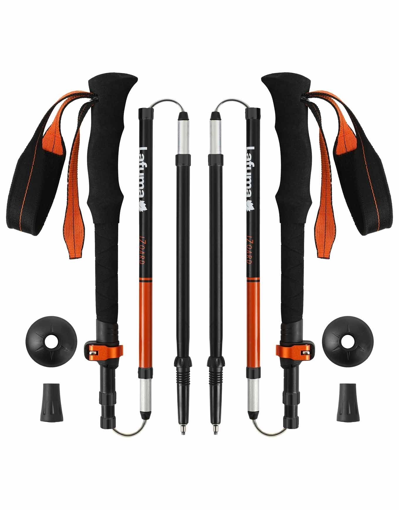 Lafuma Izoard Pairs Red/Orange : bâtons télescopiques en aluminium 4 brins pour marche sportive, randonnée et trekking. Poignées EVA et dragonnes micropolaire, pointe tungstène, rondelles été incluses.
