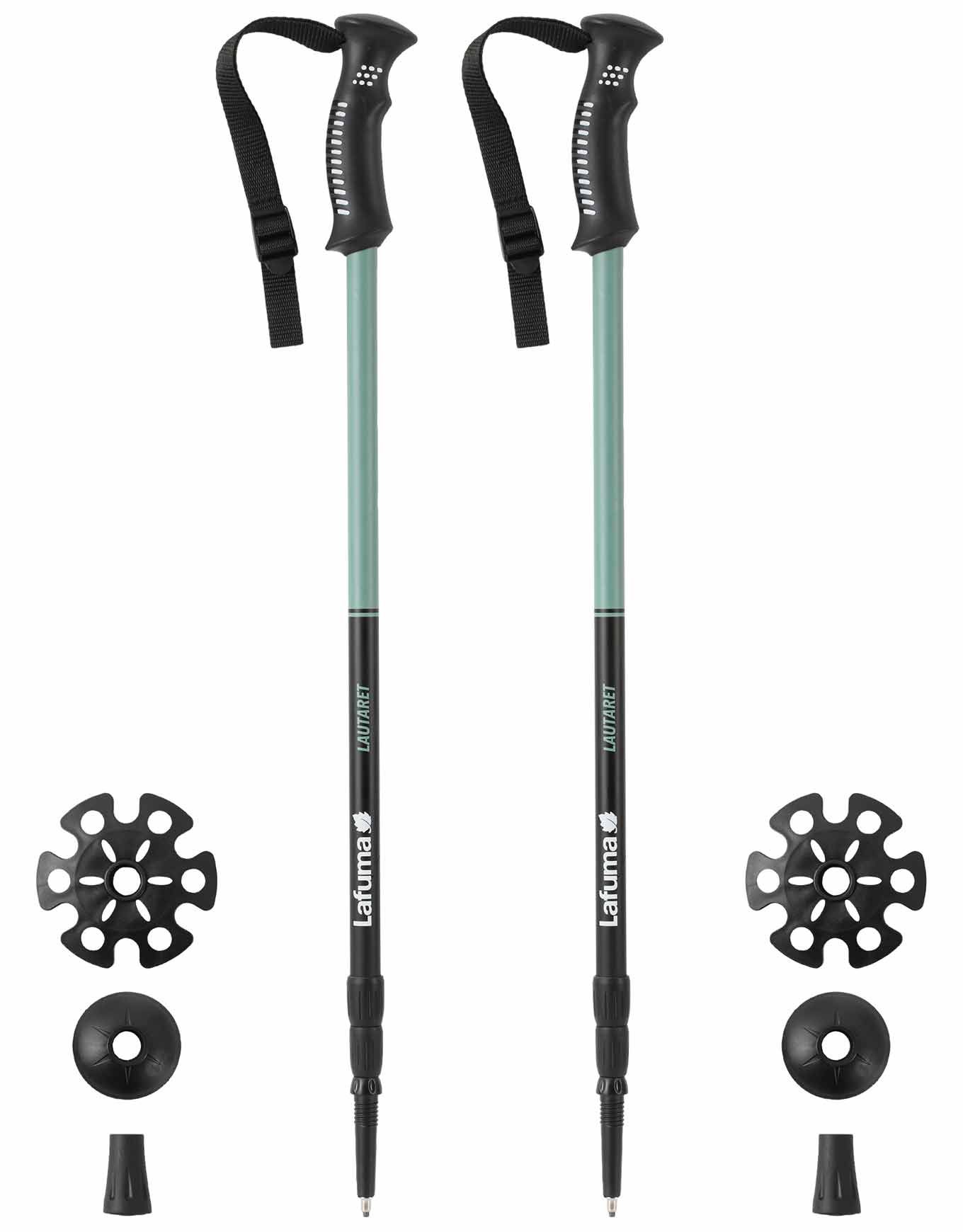Lafuma Lautaret Pairs Forest Night, bâtons de randonnée en aluminium 3 brins télescopiques, combinent robustesse et légèreté pour marche sportive et trekking toute l’année. Poignées caoutchouc, dragonnes micro-polaire, pointe tungstène, rondelles été/hiver incluses.
