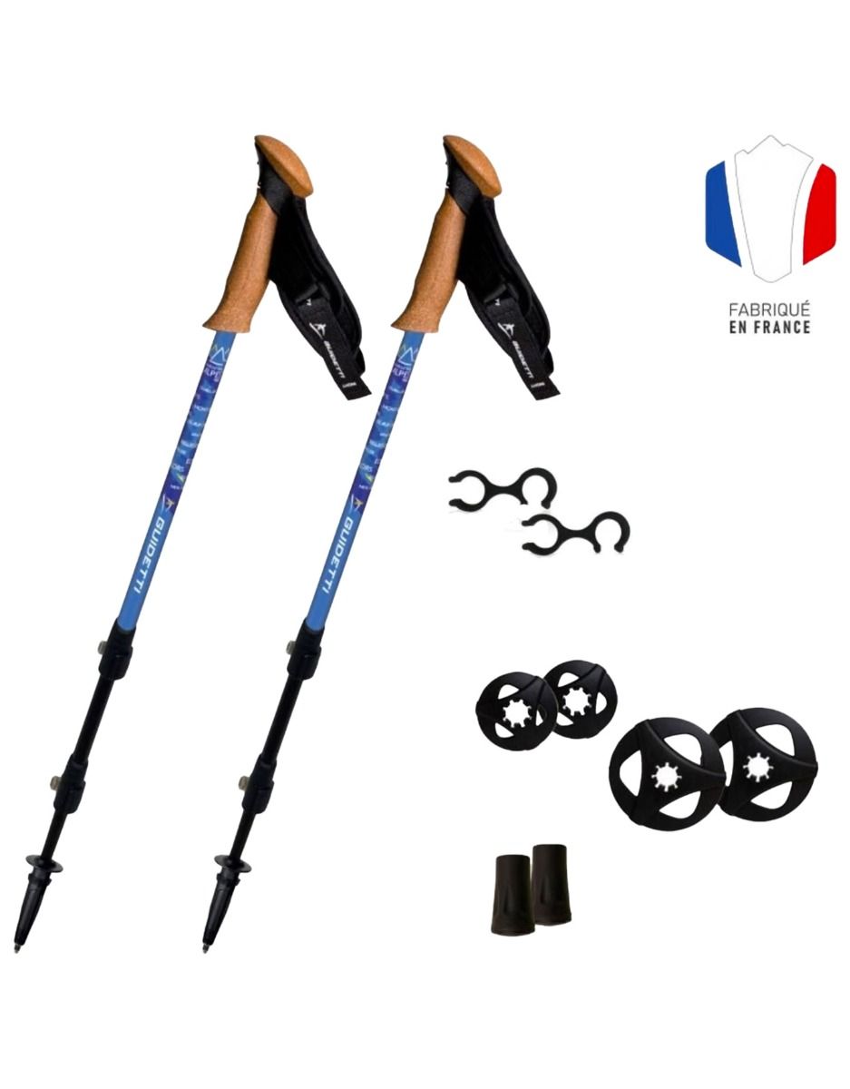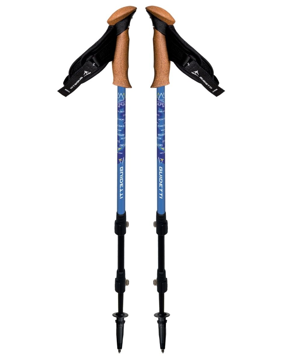 Bâton de randonnée Guidetti Massif des Alpes en aluminium 3 brins, serrage Easy Lock, poignée liège, dragonne réglable, 2 rondelles 60 et 90 mm incluses.