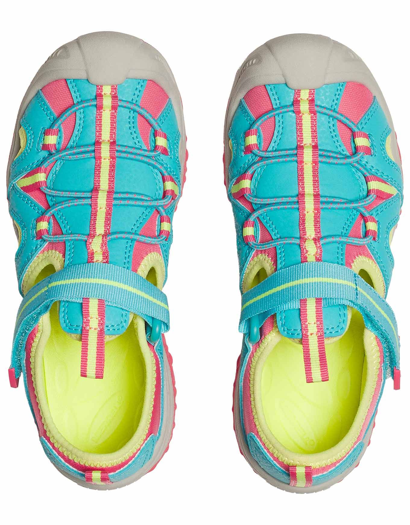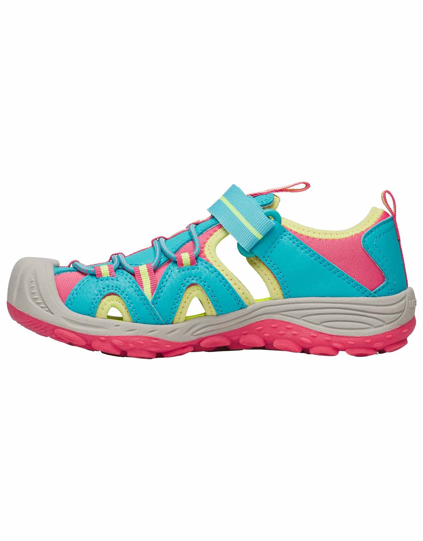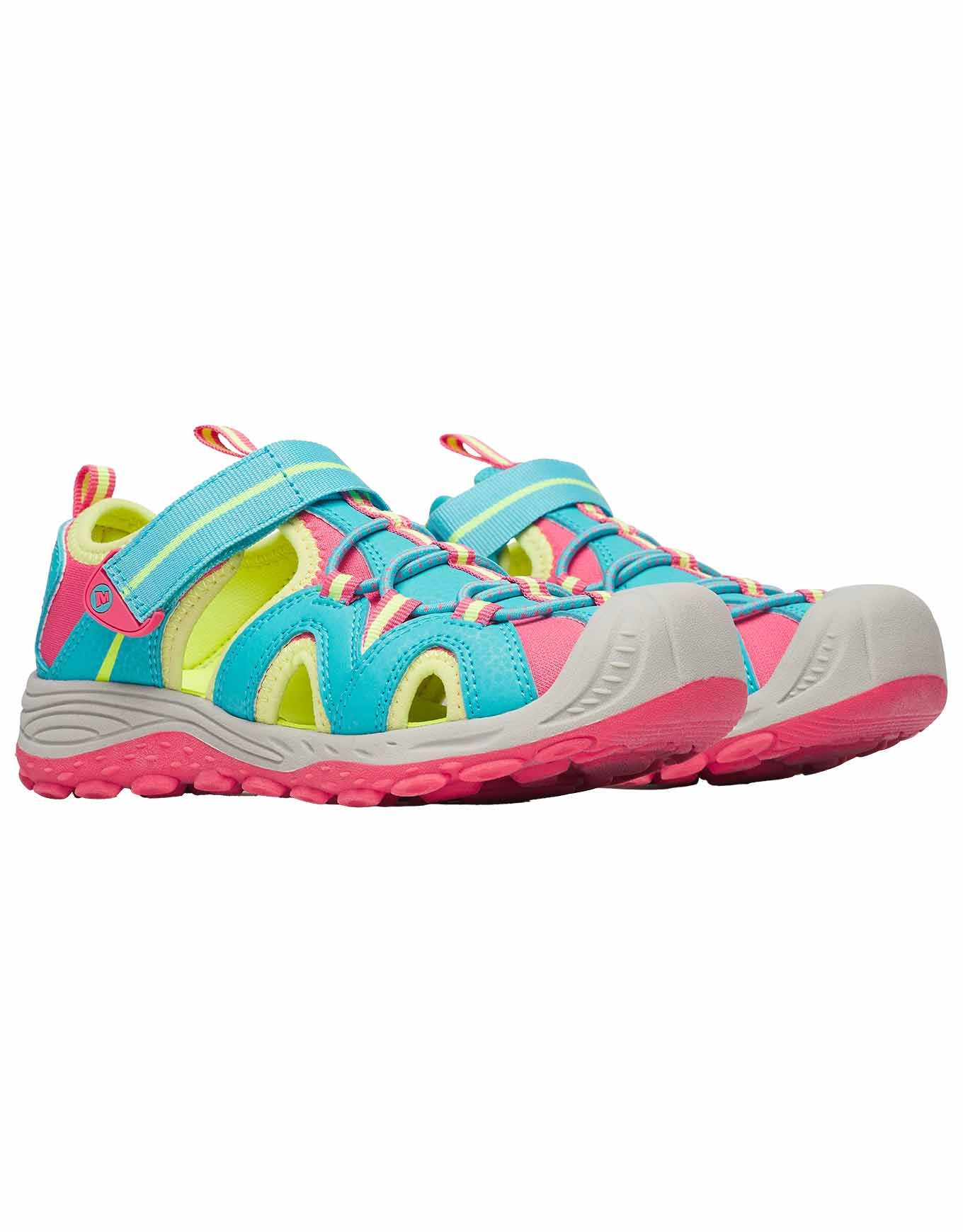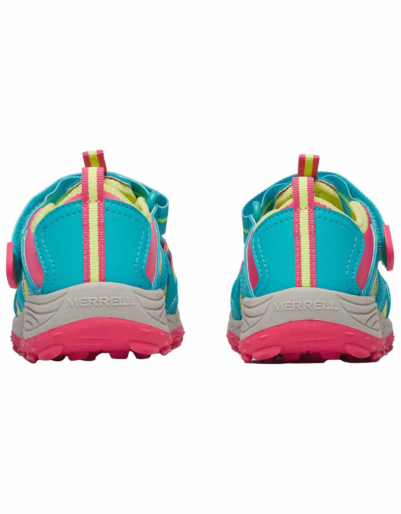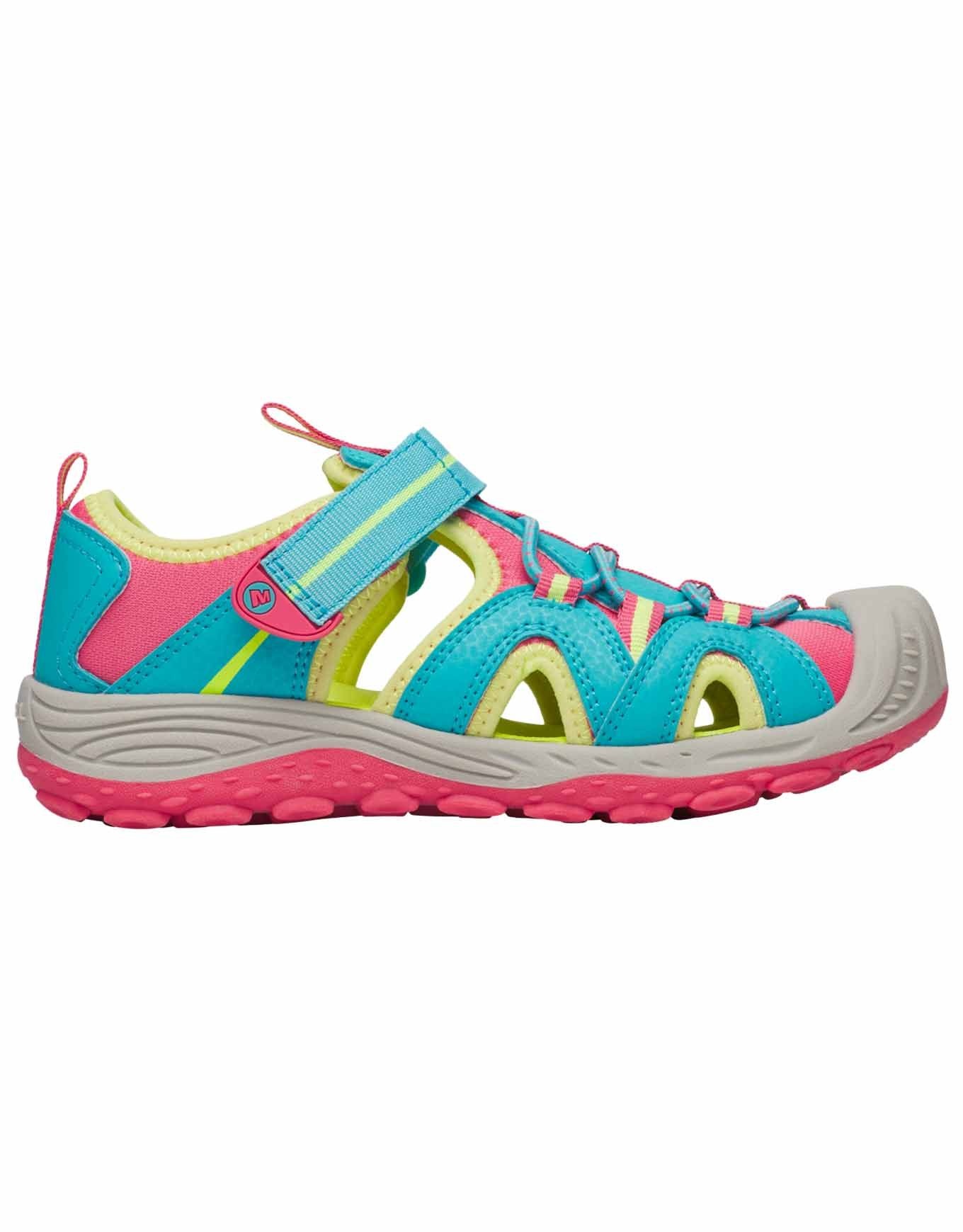 Sandale fermée Merrell Hydro 2 Turq/Coral, résistante à l’eau, fermeture scratch et semelle EVA moulée pour enfants actifs sur terrains secs ou humides.