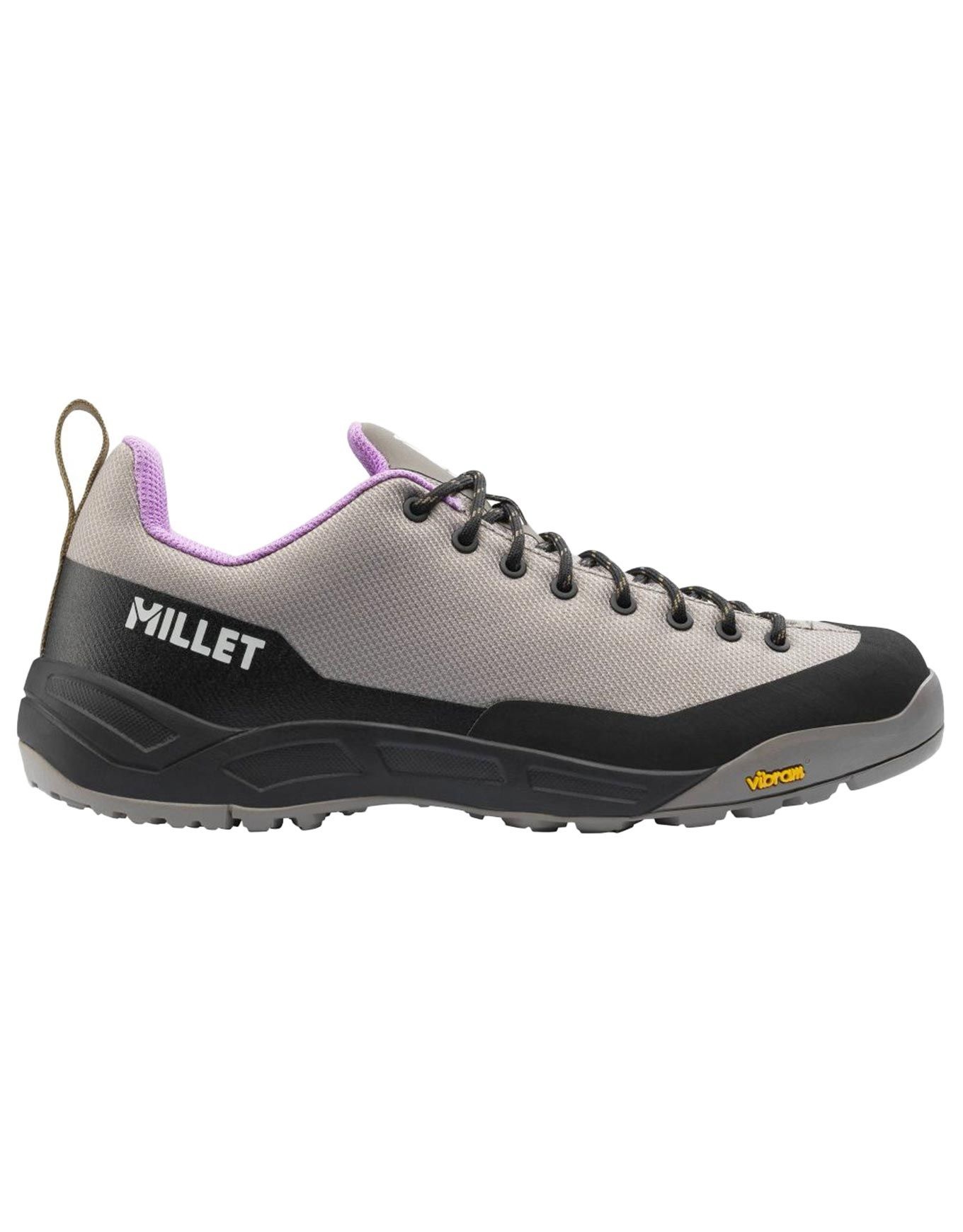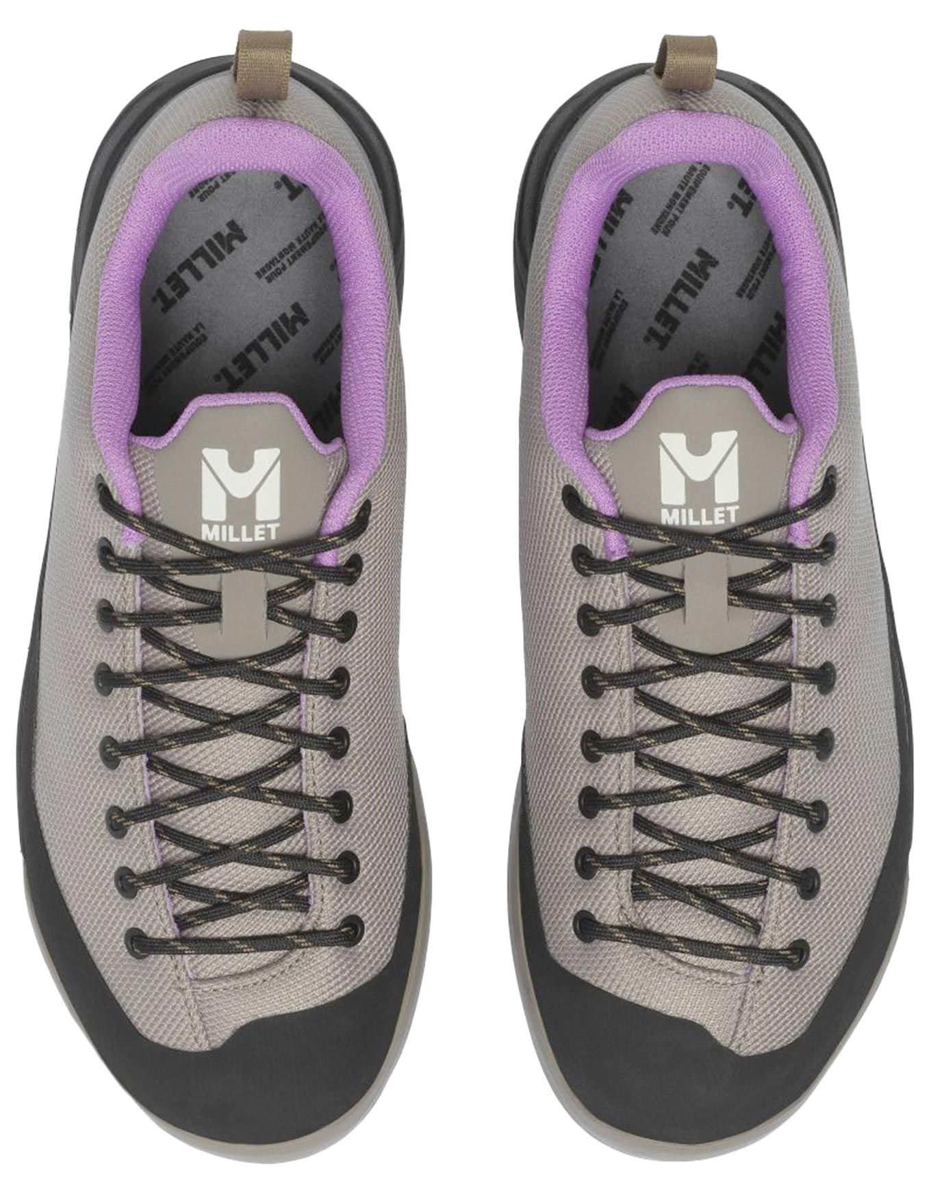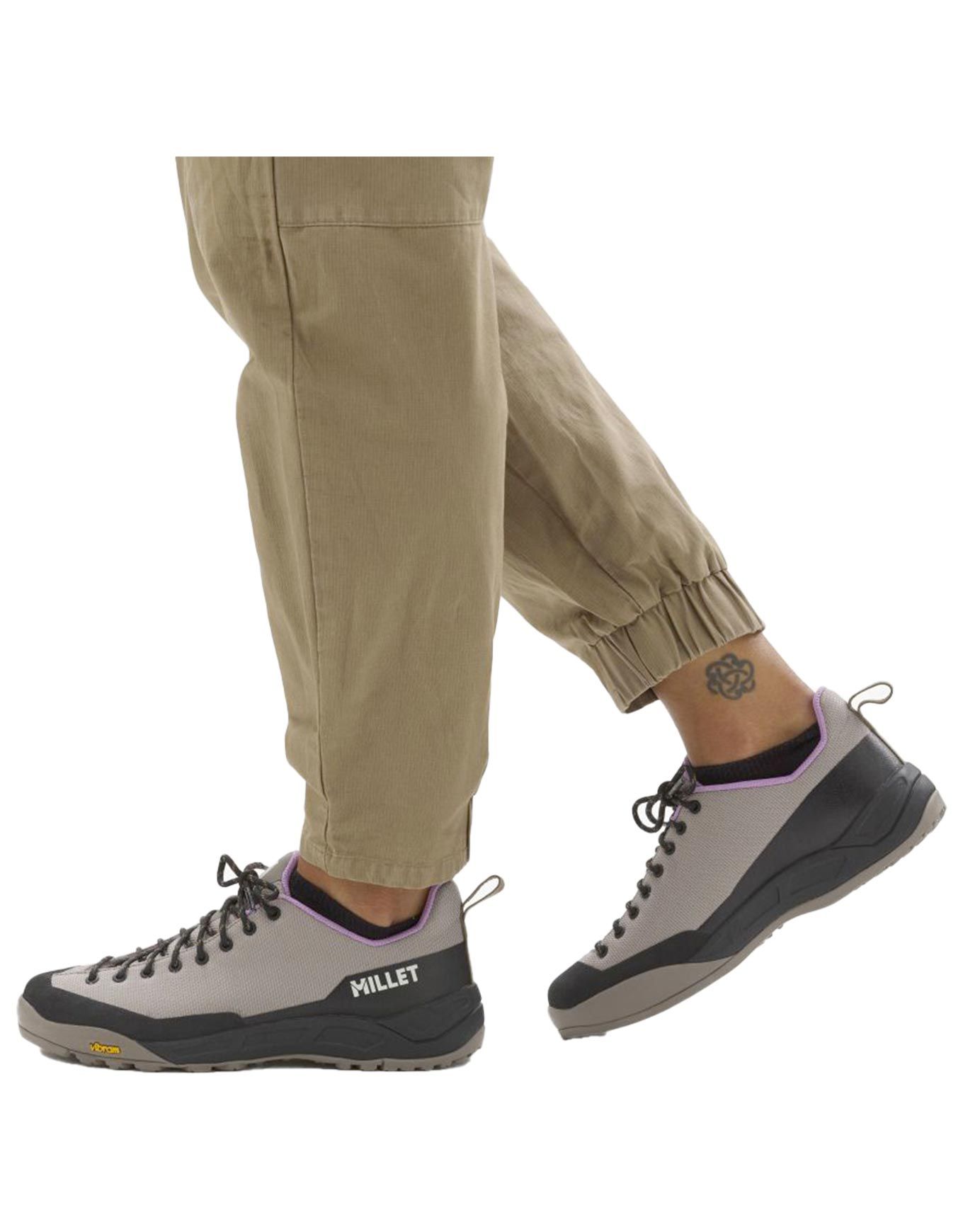 Chaussure d’approche femme Millet Cimai W Dorite avec tige mesh balistique résistante, pare-pierres en caoutchouc, semelle Vibram® PASSWORD et intercalaire EVA pour tenue, protection et confort sur terrain technique.