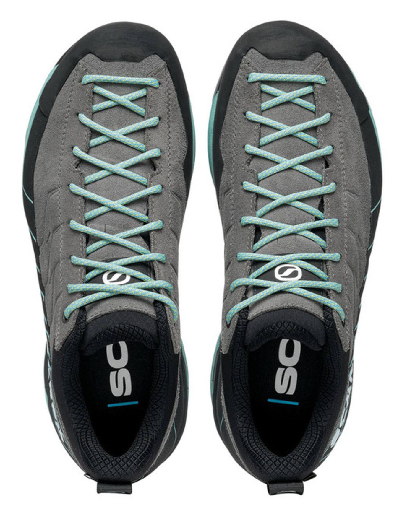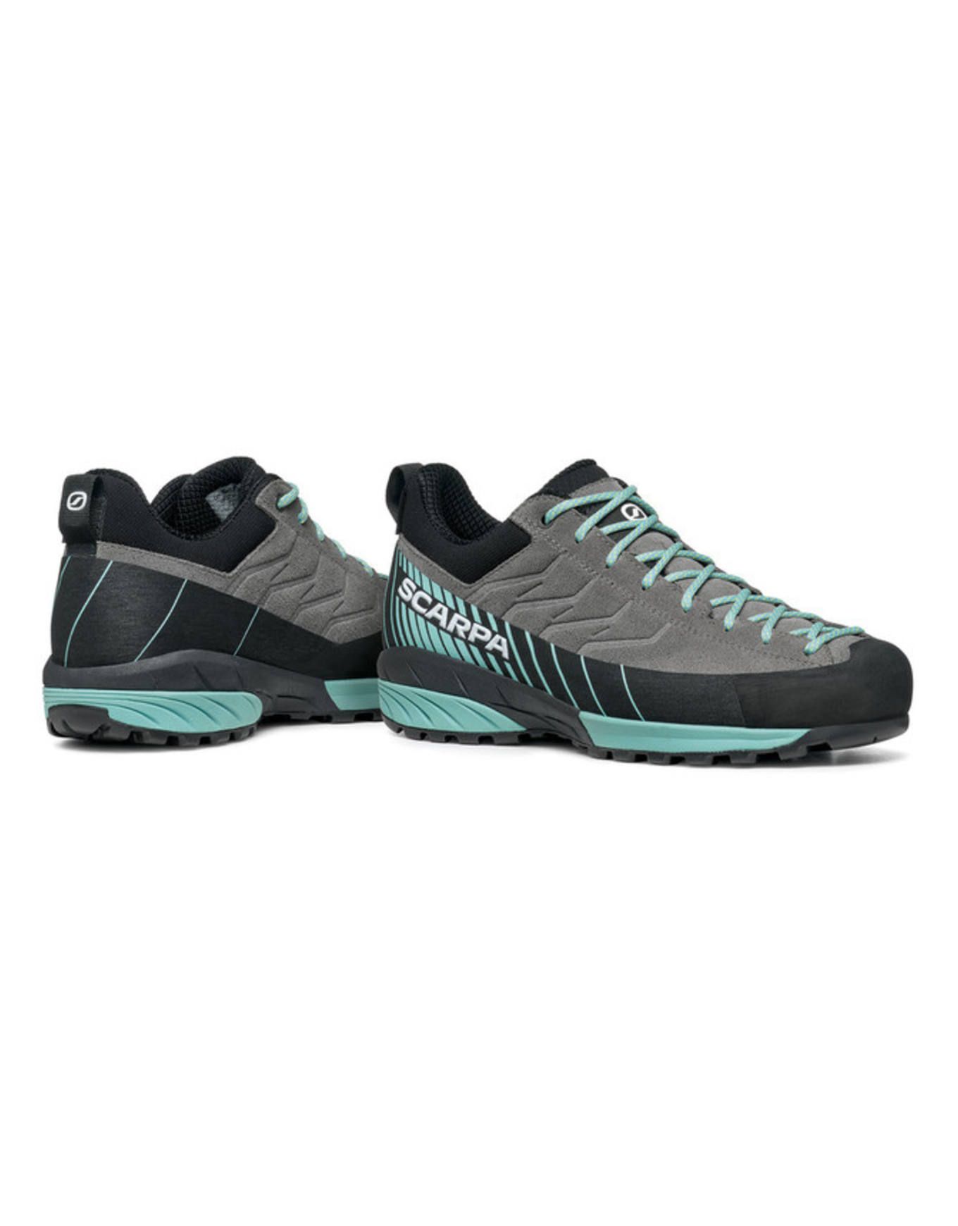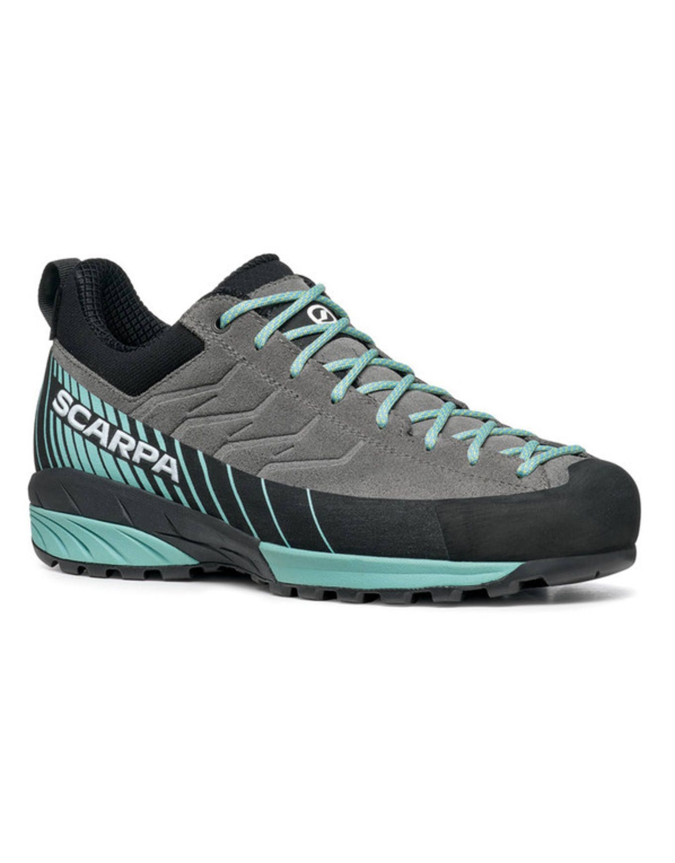 Scarpa Mescalito GTX est une chaussure d’approche femme légère (495 g) à membrane GORE-TEX imperméable, dotée d’une semelle Vibram Megagrip avec zone d’escalade et d’appui talon pour accéder en sécurité aux spots de grimpe.