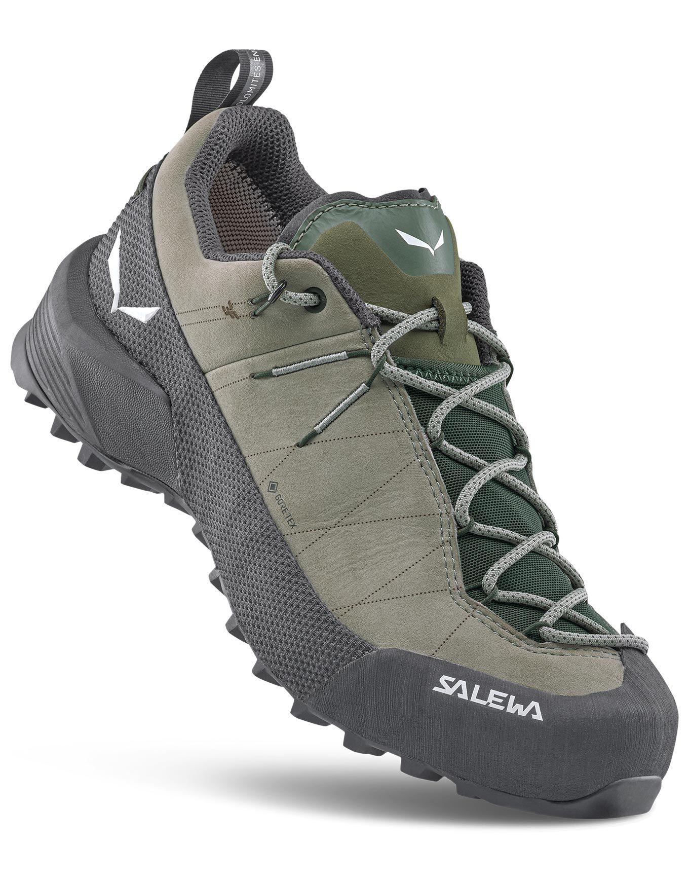 Conçues pour les performances en escalade et les approches techniques, les Wildfire Leather 2 GTX Shadow/Black de Salewa sont des chaussures pour femme développées dans les Dolomites.