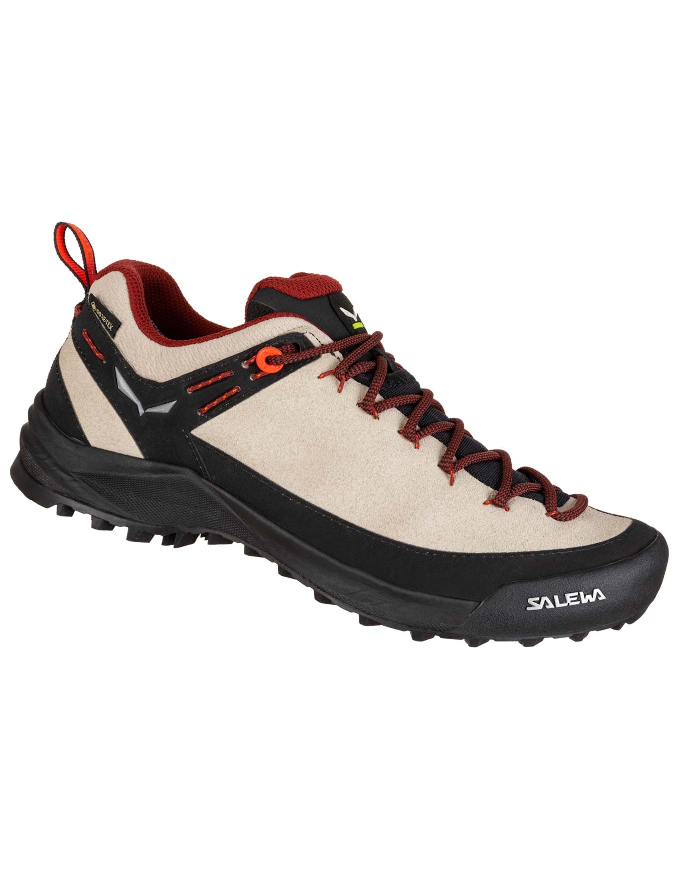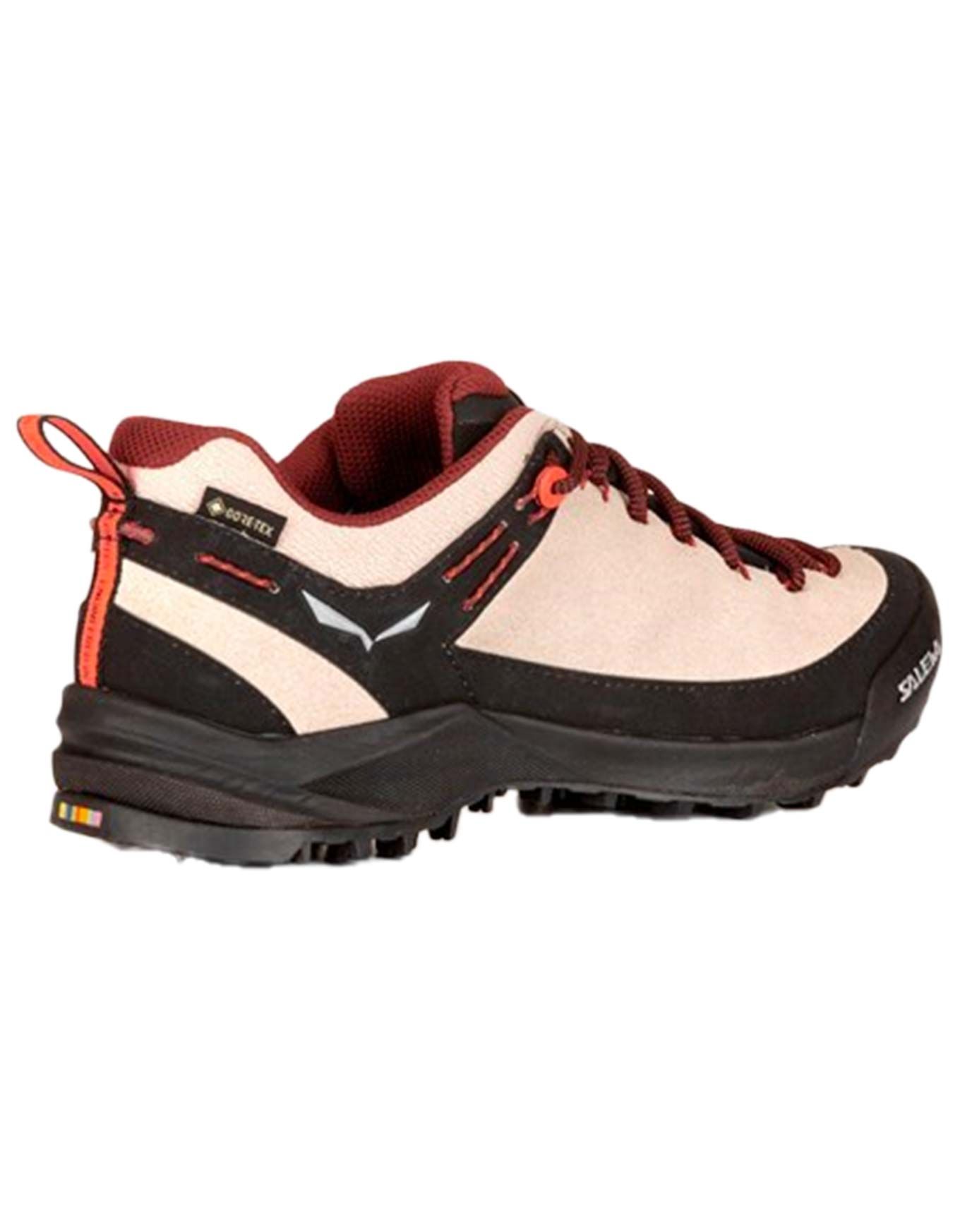 Chaussure d’approche technique femme Salewa Wildfire Leather GTX W Oatmeal/Black, semelle Pomoca Speed MTN pour adhérence sur roche et traction en boue, membrane GORE-TEX imperméable, système 3F et semelle Ortholite respirante pour maintien et confort.
