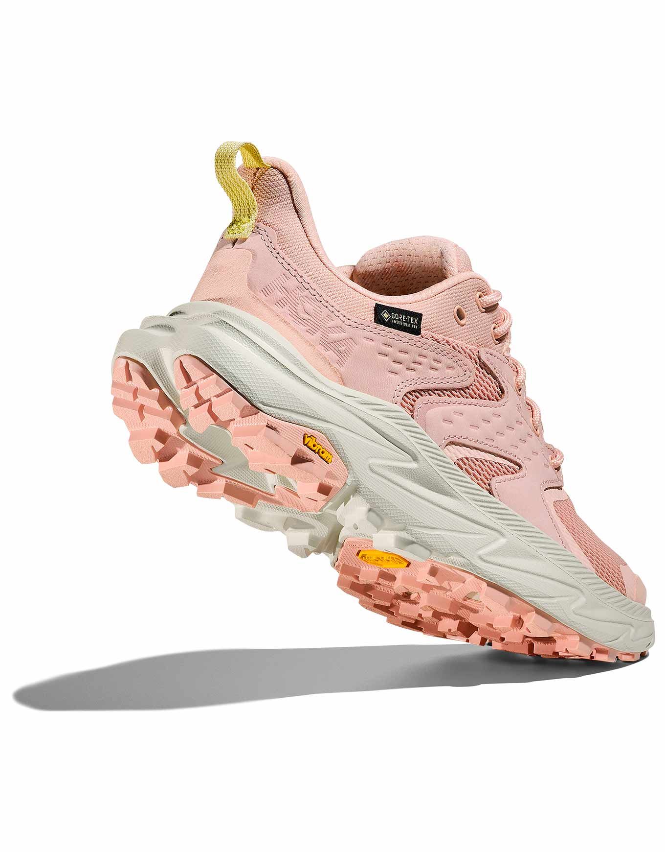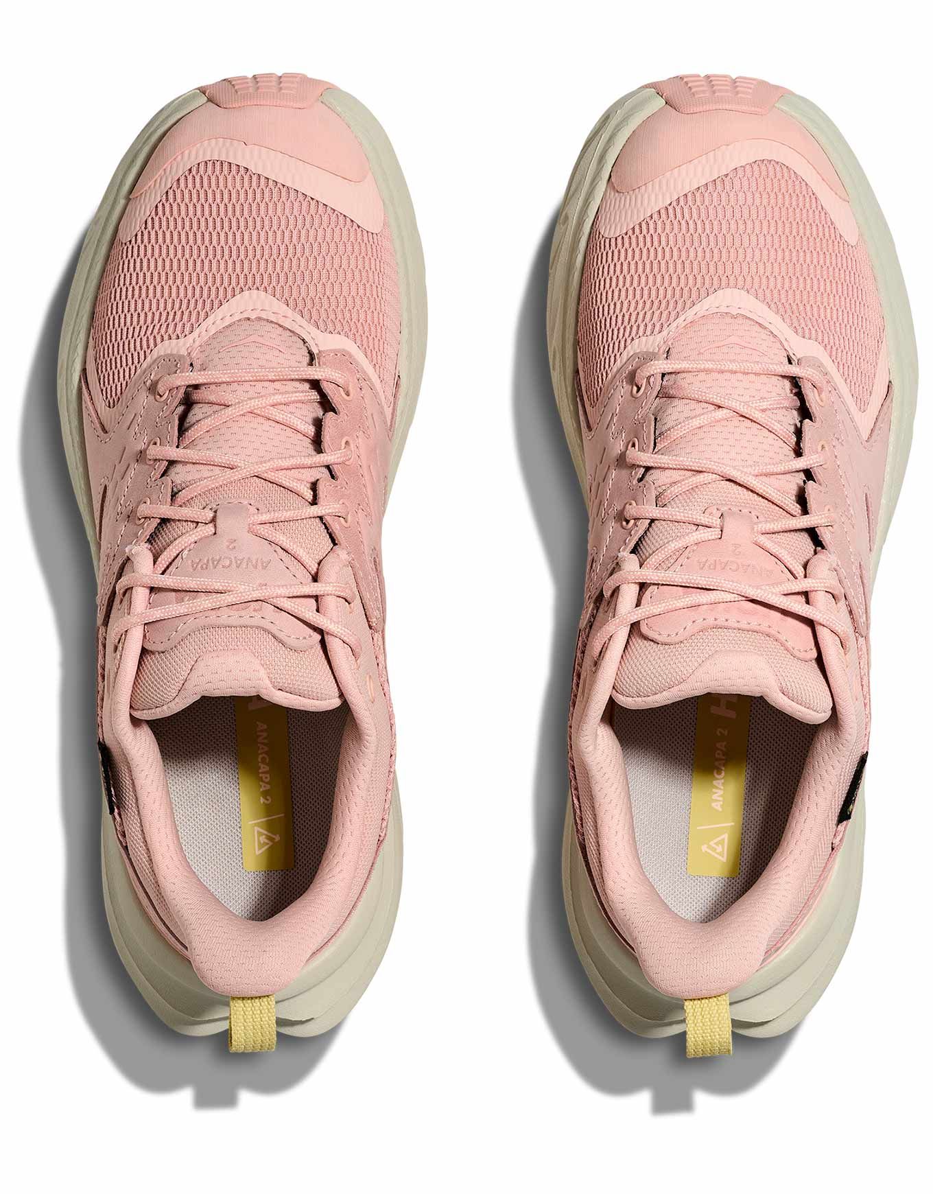 Chaussure de randonnée journée femme Hoka Anacapa 2 Low GTX Rose Latte/Truffle, légère, tige mesh polyester recyclé, membrane GORE-TEX imperméable, semelle Vibram MegaGrip, mousse EVA canne à sucre.