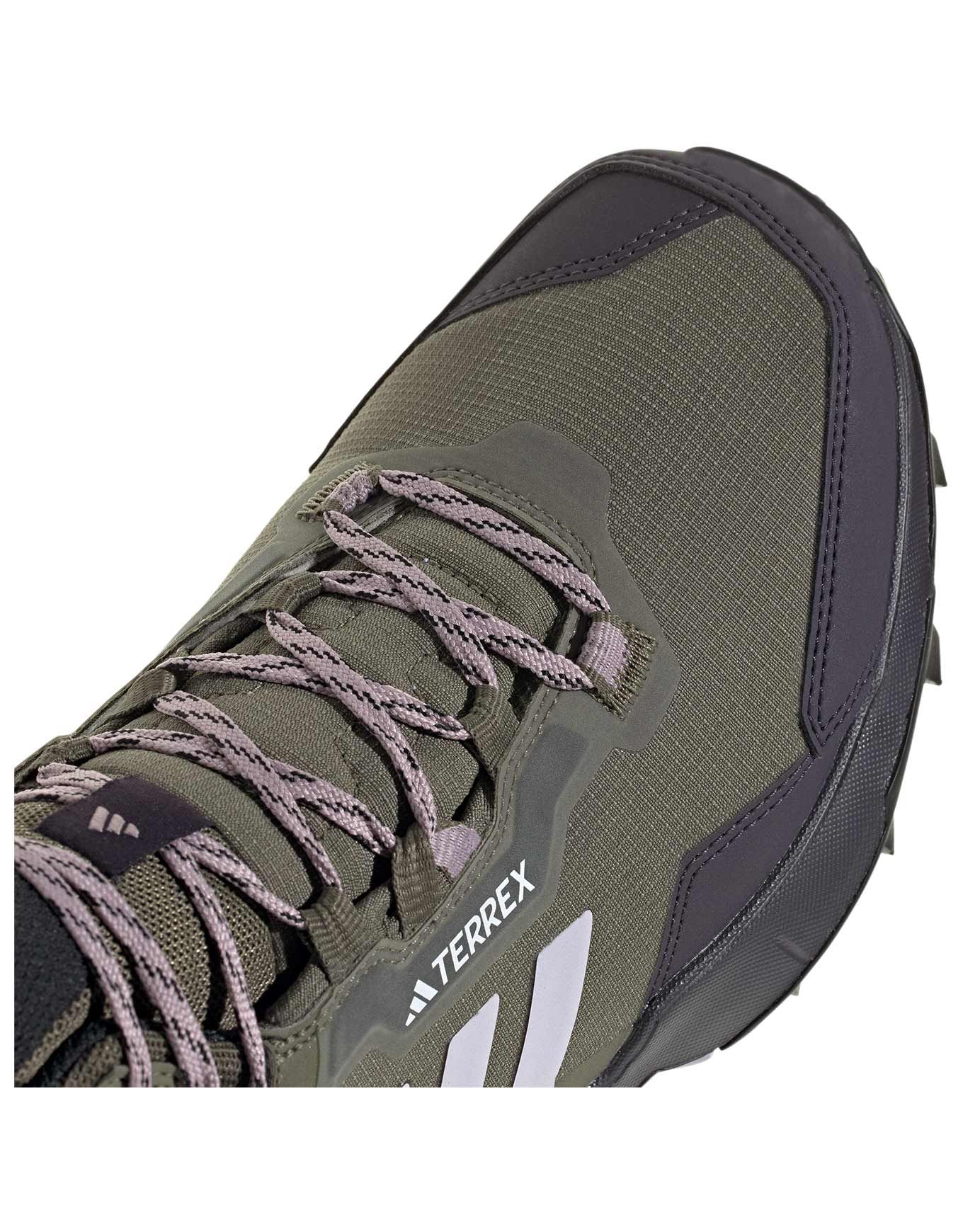 Chaussures de randonnée Adidas Ax4 Mid GTX W Olive Strata pour homme, imperméables et respirantes avec membrane Gore-Tex, tige mi-haute en mesh résistant, semelle Continental adhérente et amorti EVA durable.