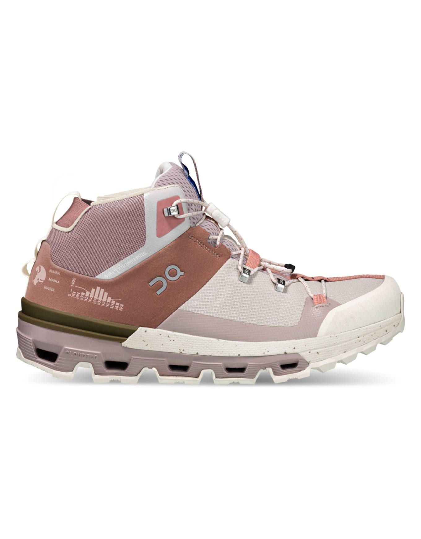 Chaussure de randonnée femme On Running Cloudtrax, tige mid 365 g, membrane imper-respirante, Cloudtec®, Speedboard et crampons Missiongrip™ pour confort, protection et dynamisme sur sentiers techniques.