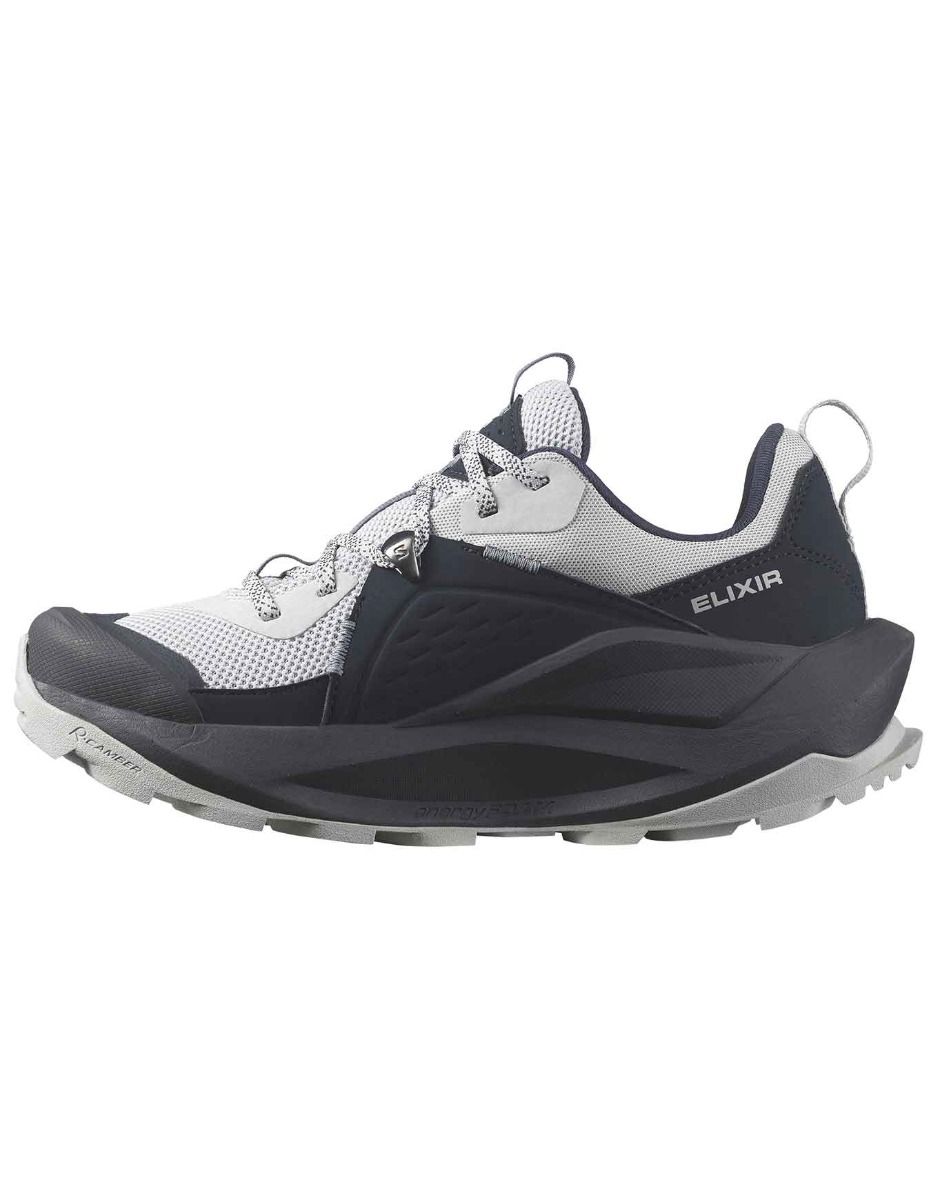 Chaussure de randonnée femme Salomon Elixir GTX W conçue pour les longues distances, offrant stabilité sur terrain rocailleux grâce à l’Active Chassis™, imperméabilité GORE-TEX, accroche Contagrip® et amorti EVA Energy Foam.