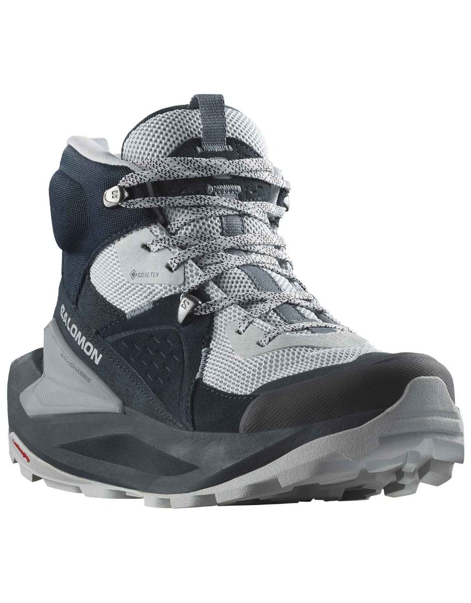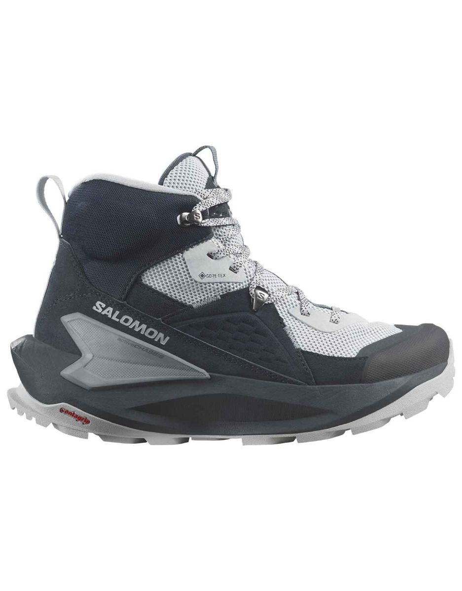 Chaussure de randonnée mi-haute Salomon Elixir Mid GTX W : membrane GORE-TEX, semelle Contagrip® et Active Chassis™ pour stabilité, accroche et confort sur longues distances.