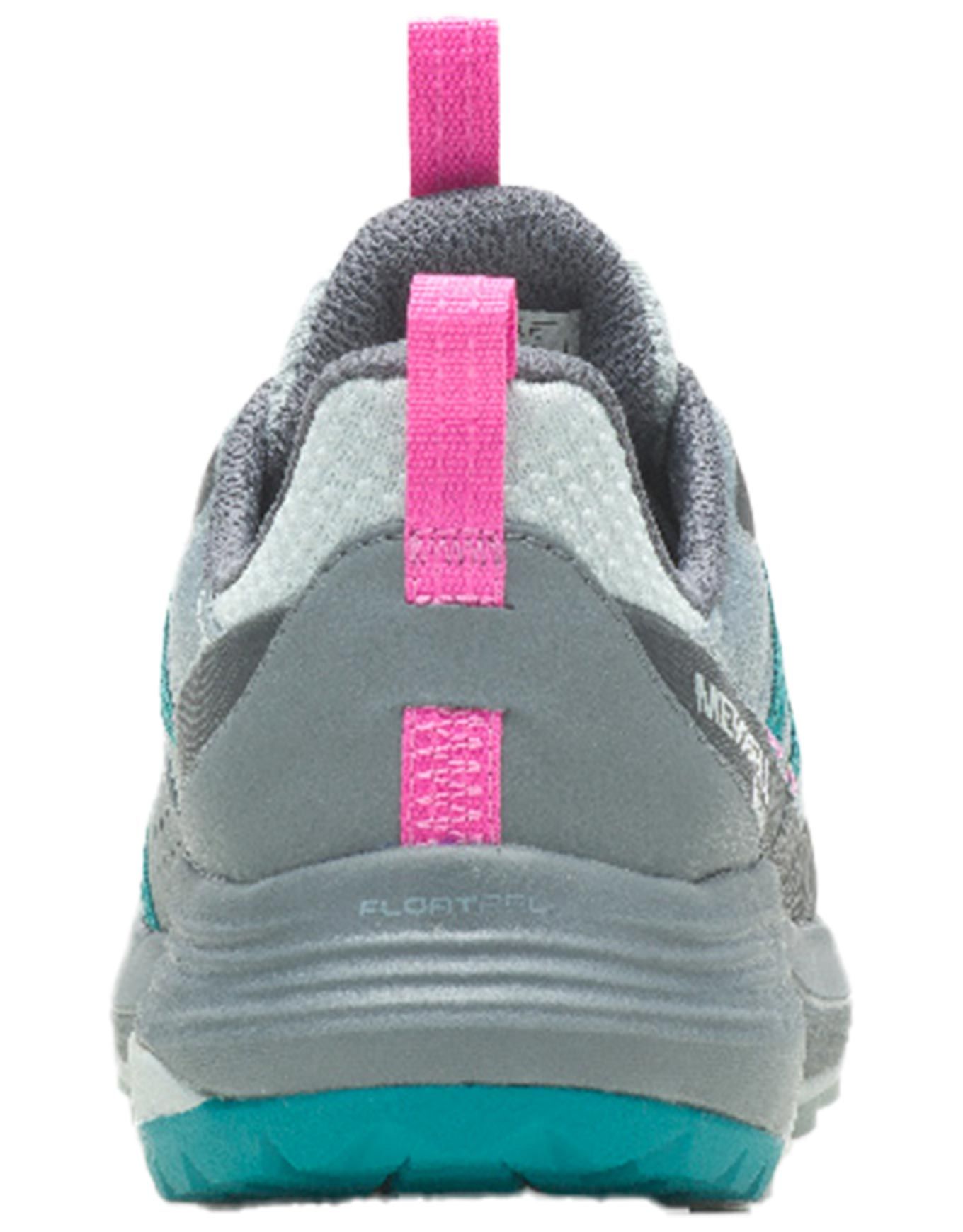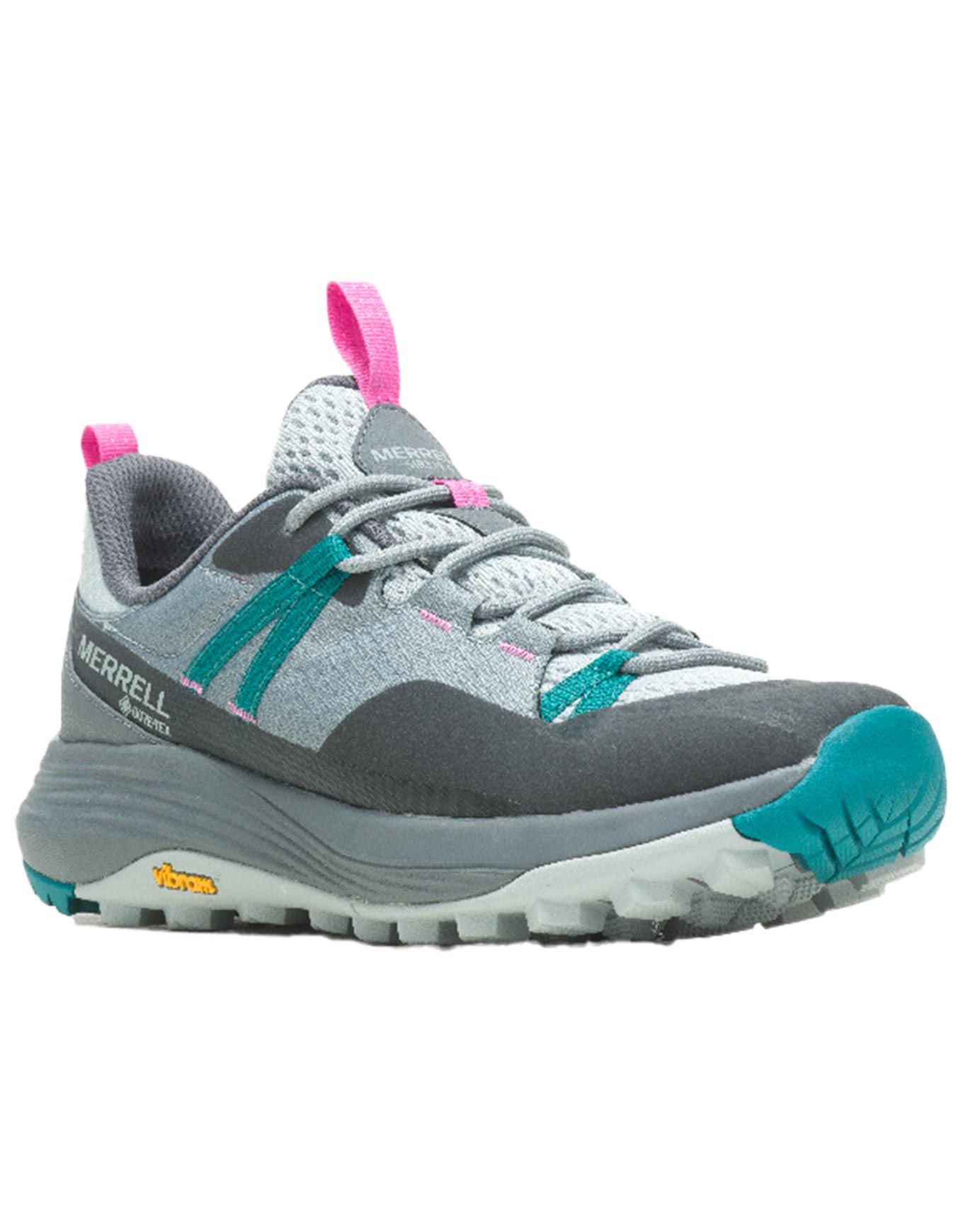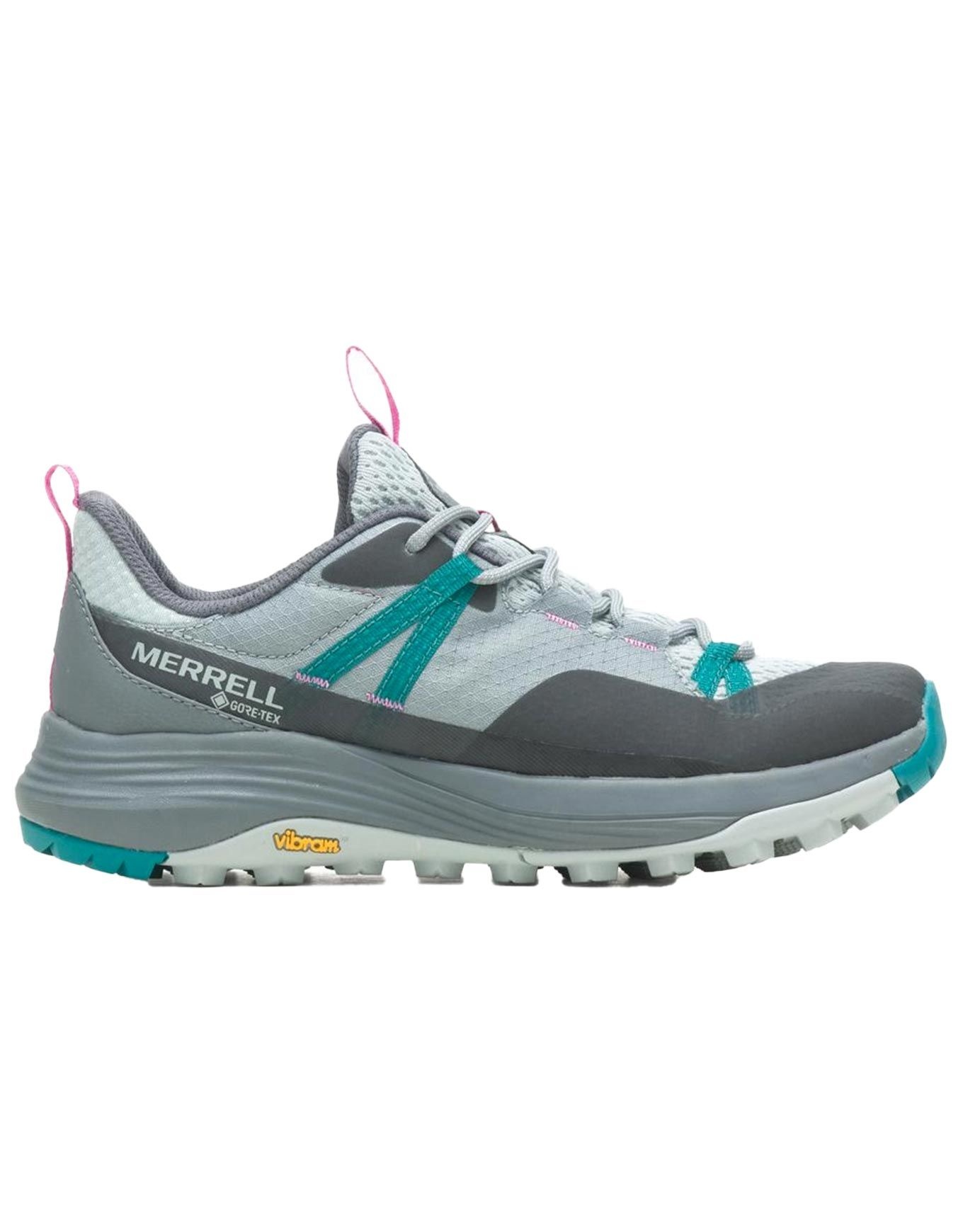 Chaussures de randonnée femme Merrell Siren 4 GTX avec membrane GORE-TEX, semelle Vibram TC5+, embout caoutchouc et mousse FloatPro pour maintien, protection et confort sur sentiers.