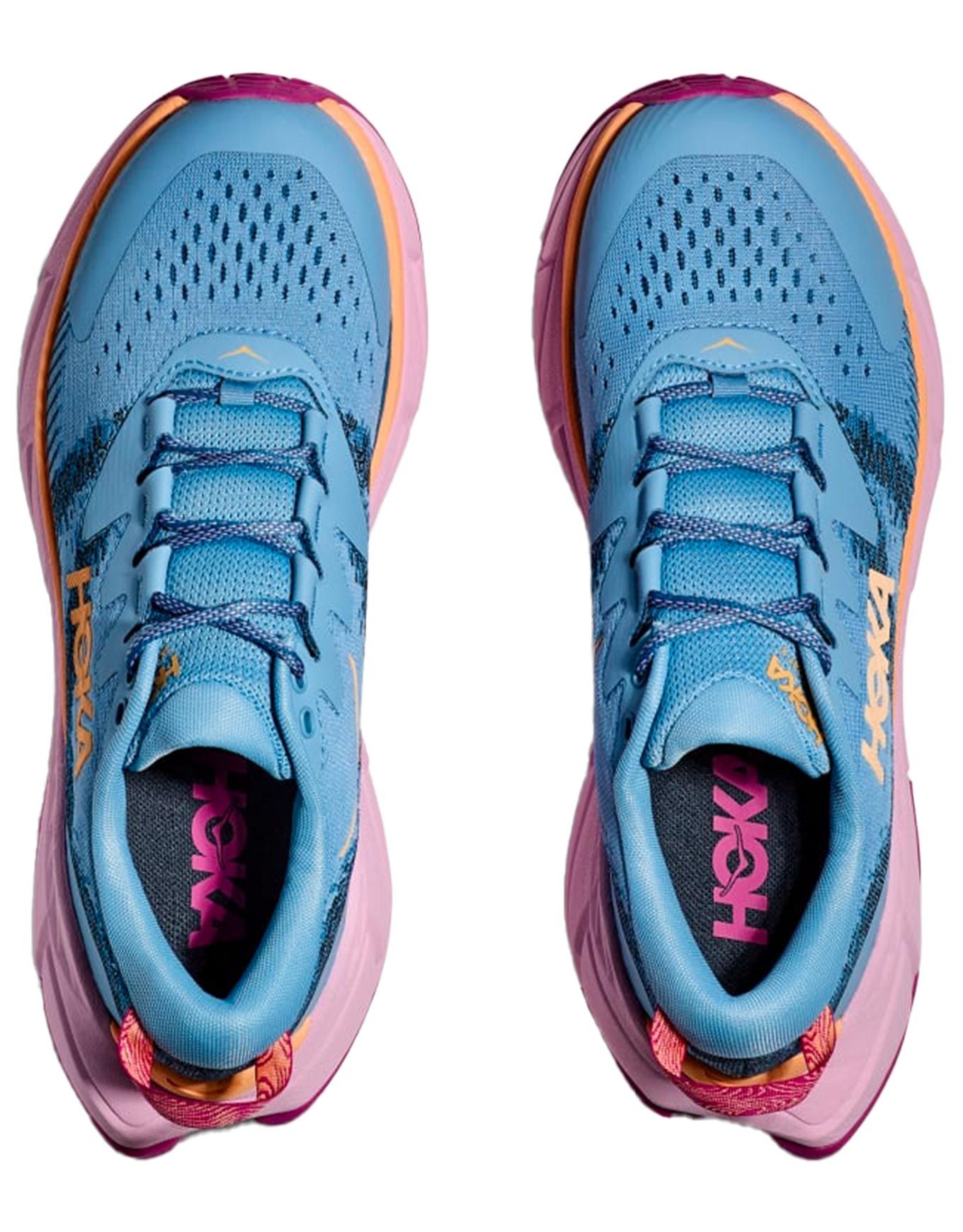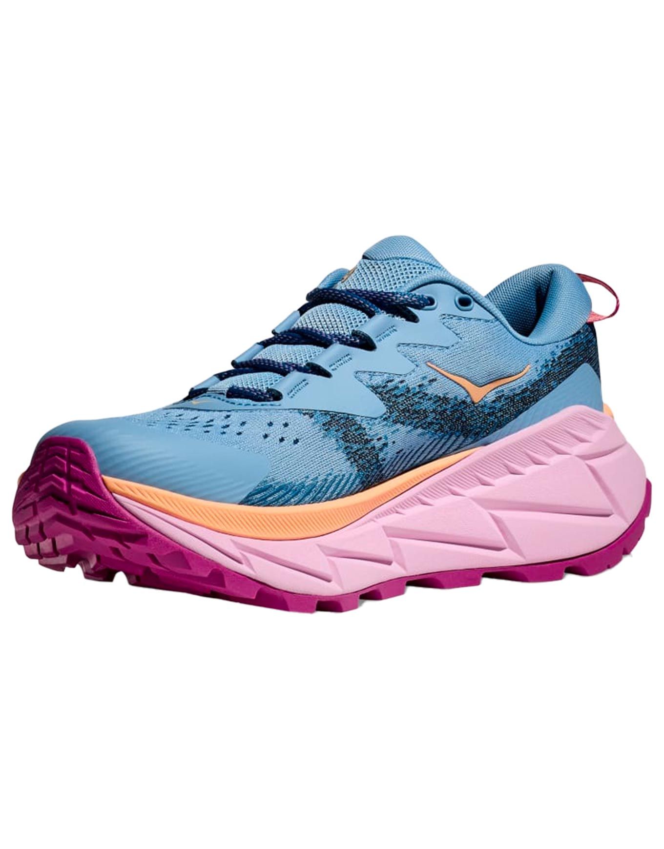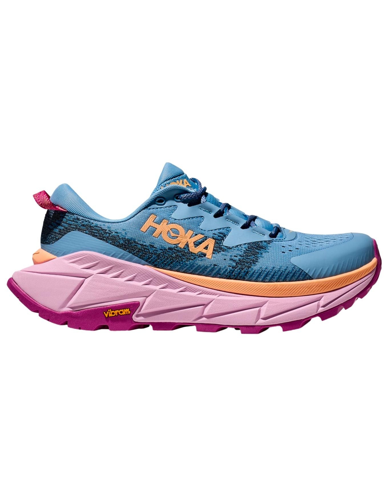 Chaussures de trail Hoka Skyline-Float X Azure Rain/Pink Twilight pour femme, polyvalentes sentiers-ville, tige maille respirante, semelle EVA double densité, Vibram XS Trek pour adhérence montagne.