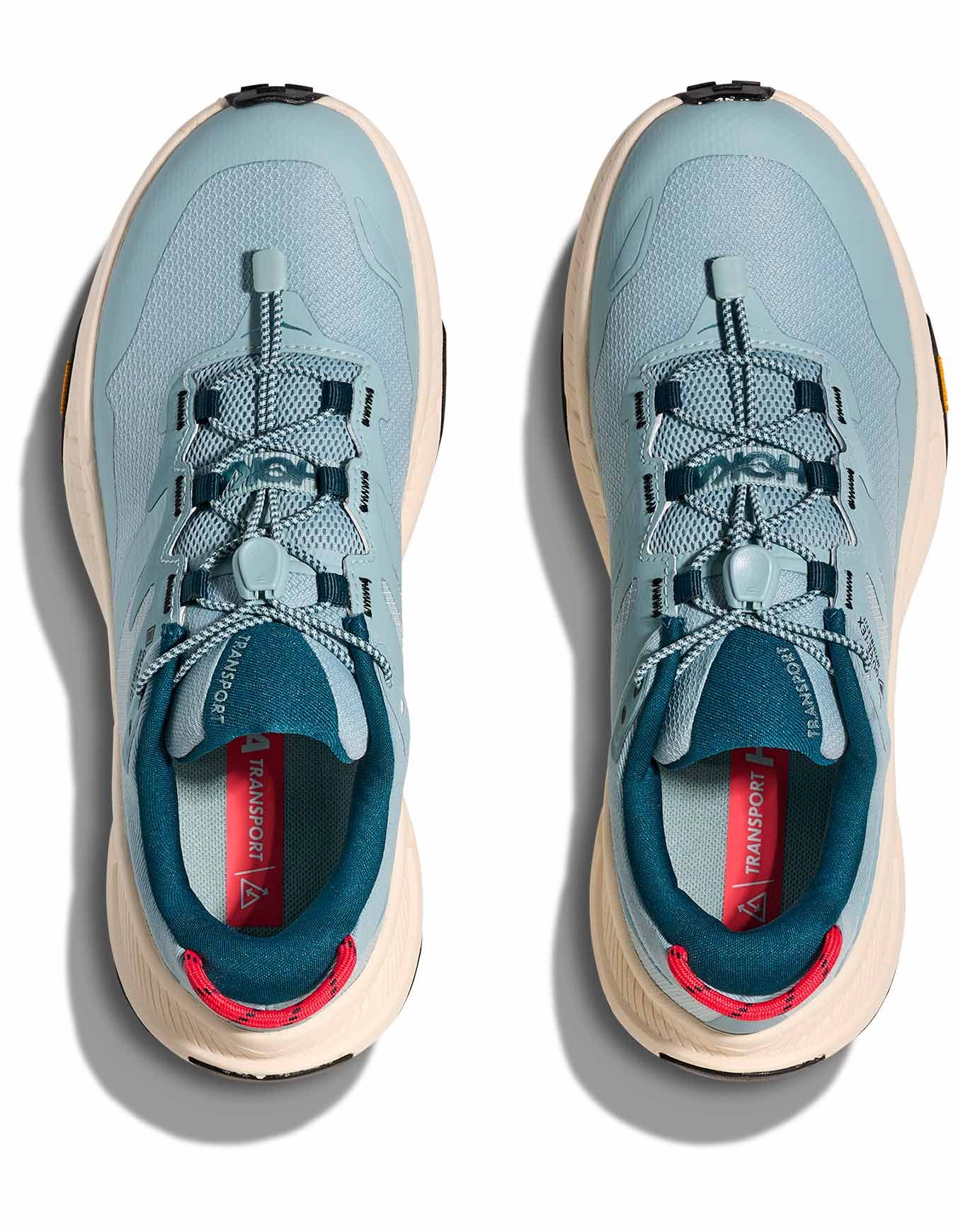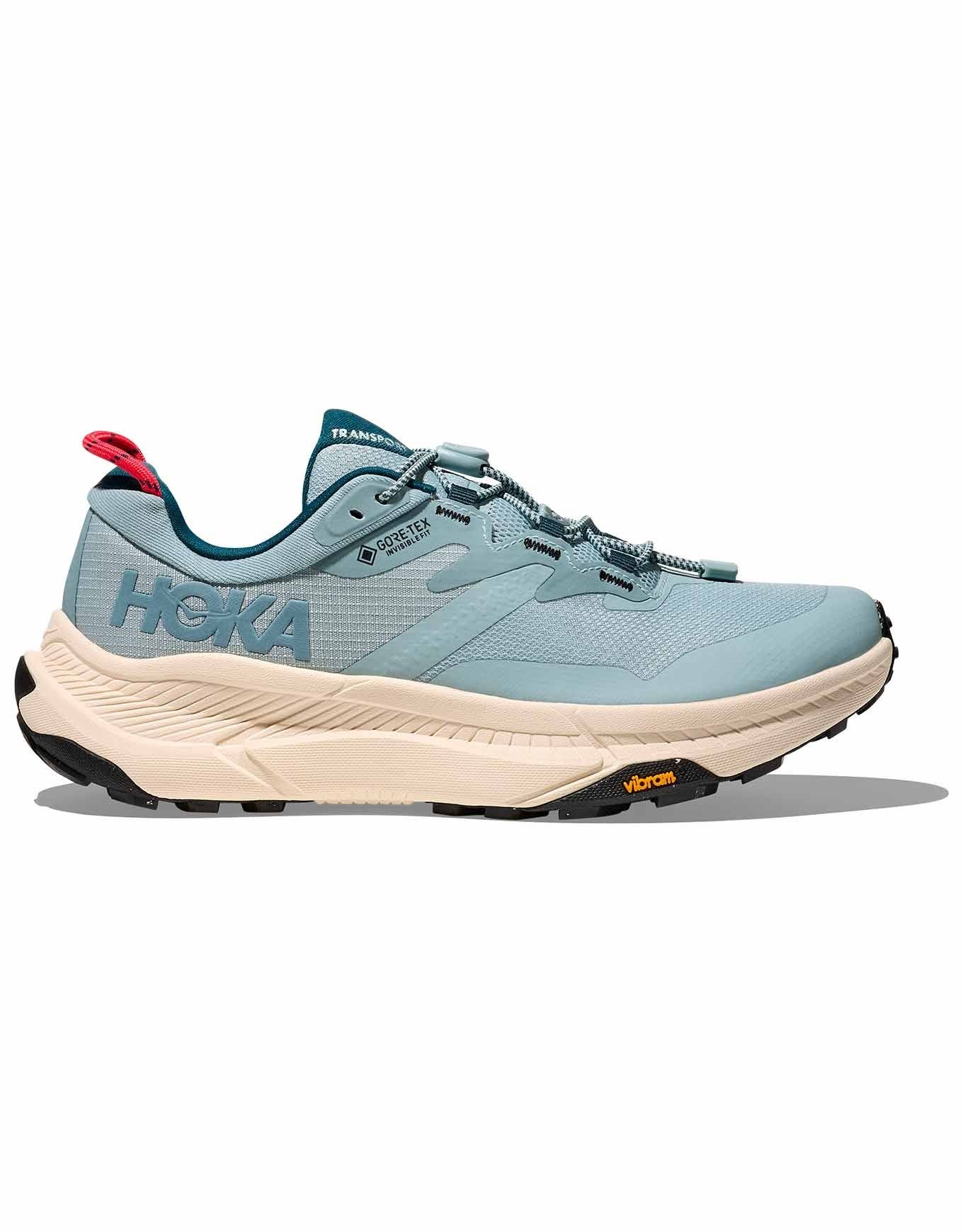 Chaussure multifonction Hoka Transport GTX Druzy/Birch pour femme, en tissu Cordura avec membrane GORE-TEX, semelle Vibram EcoStep Natural et réflectivité 360° pour le confort urbain au sec.