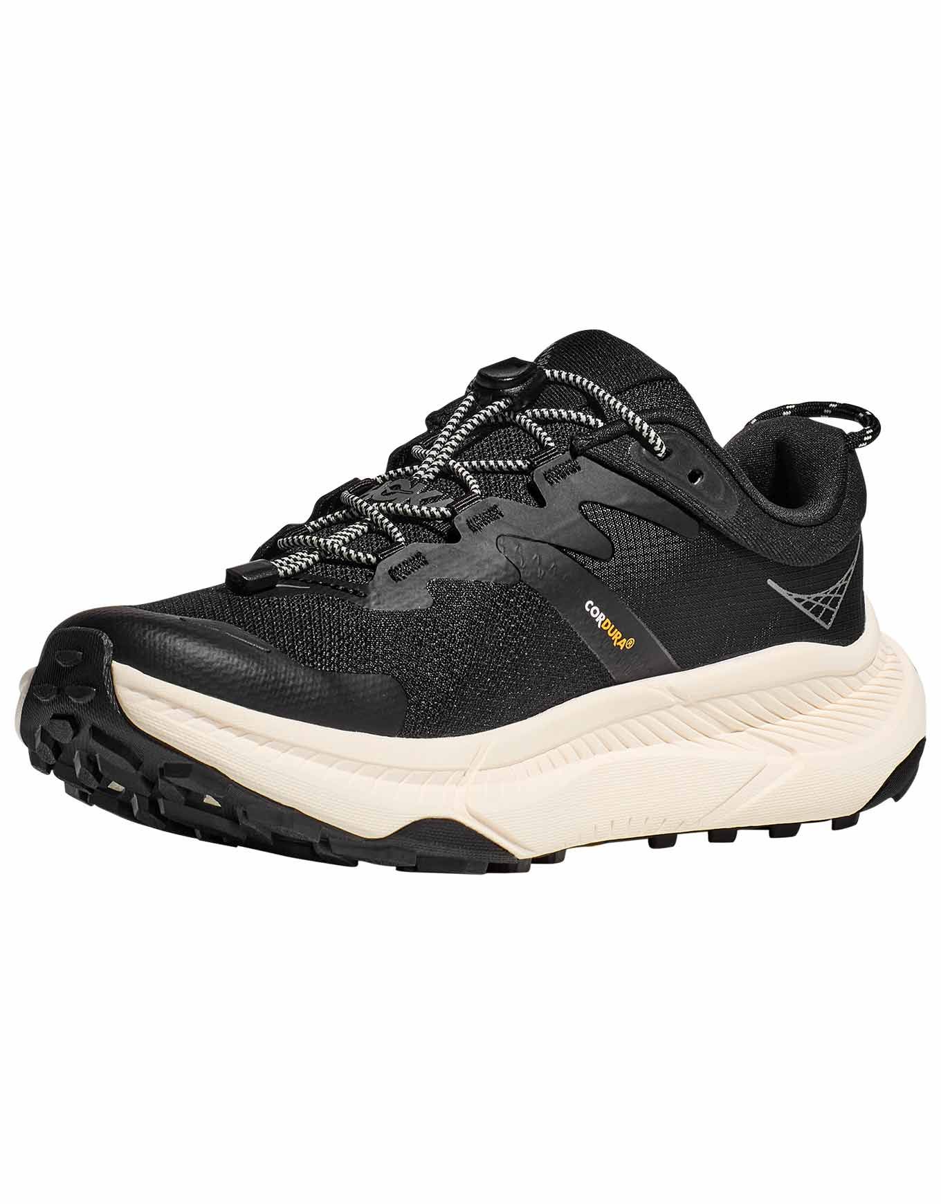 La Transport Black/Alabaster Hoka est une chaussure multifonction femme alliant tige Cordura résistante, laçage rapide, semelle EVA confortable et Vibram EcoStep Natural. Réflective 360° pour la ville nocturne.