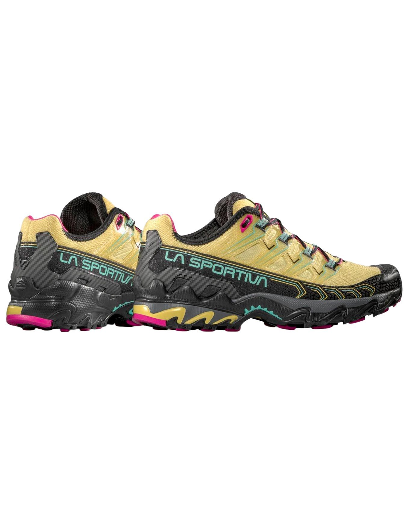 La Sportiva Ultra Raptor II Banana/Black est une chaussure de randonnée femme combinant empeigne Air-Mesh respirante, semelle FriXion® White au grip fiable et plateforme EVA Endurance amortissante pour un confort enveloppant sur sentier.