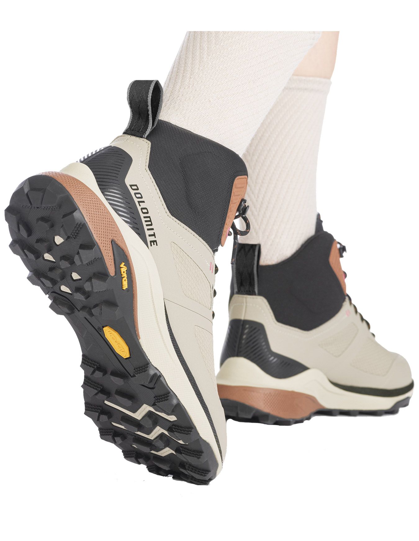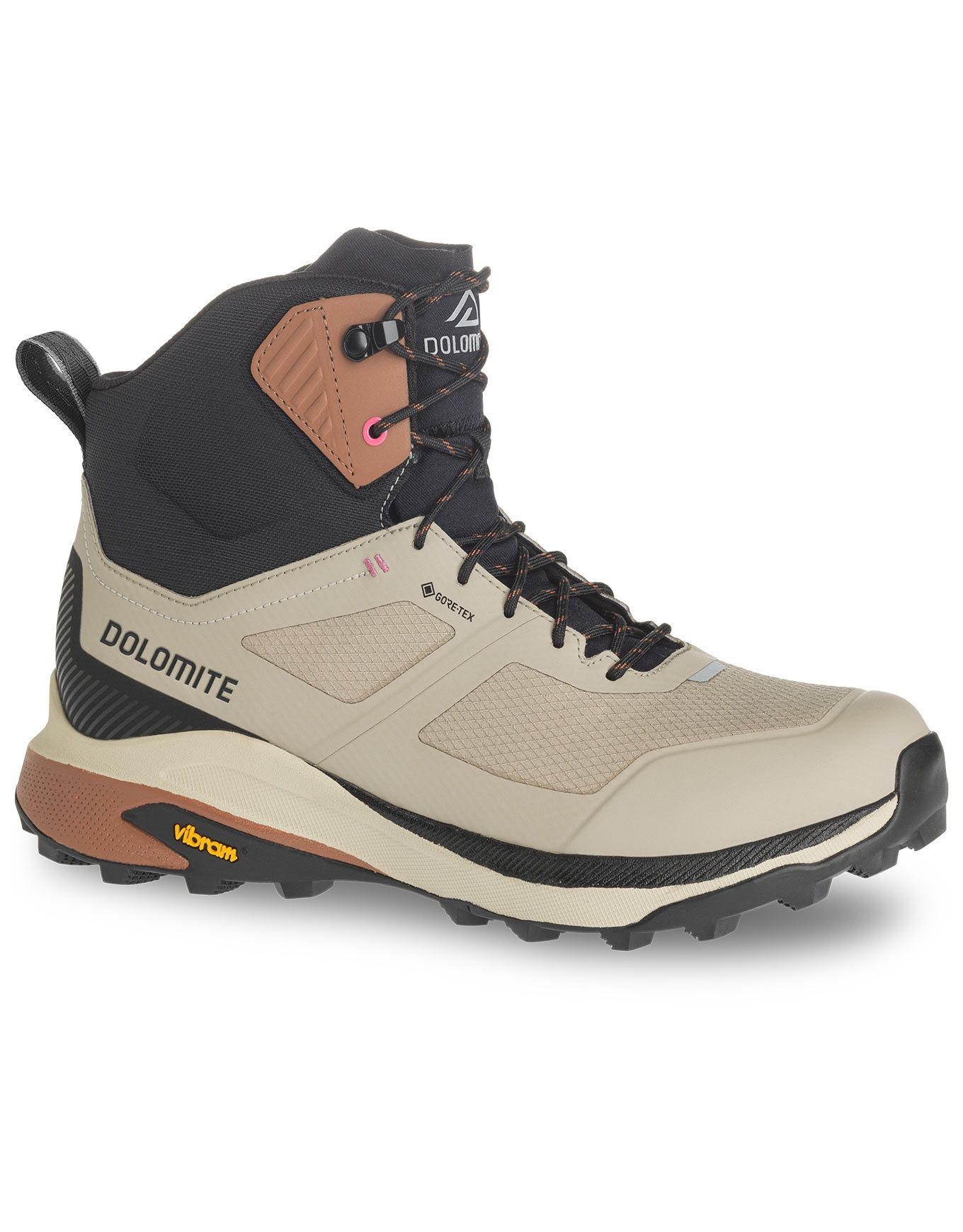 Chaussures de randonnée Dolomite Dol Shoe W’S Nibelia High GTX Goat Beige pour femme, avec membrane Gore-Tex, tige mesh ripstop légère et semelle Vibram Megagrip pour imperméabilité, respirabilité et adhérence sur tout terrain.