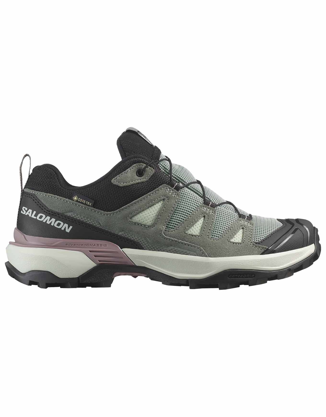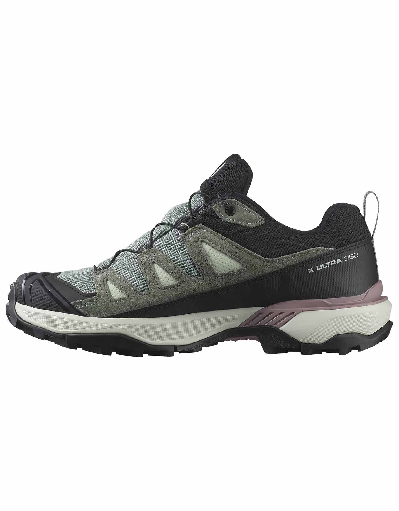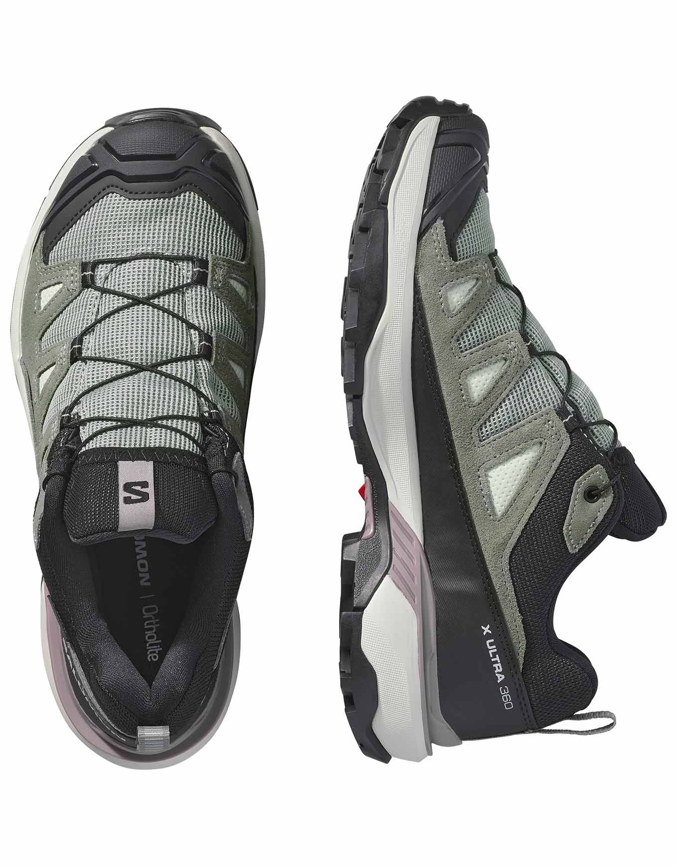 La chaussure de randonnée Salomon X Ultra 360 Ltr GTX Green Medium/Sedona Sage pour femme combine membrane GORE-TEX, châssis ADV-C Chassis™ et semelle All Terrain Contagrip® pour maintenir le pied, garantir la sécheresse et assurer l’accroche sur tout terrain.